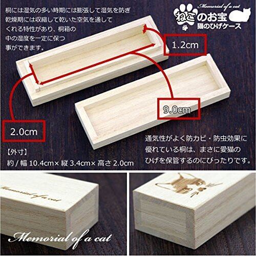 猫のひげケース 桐製 ヒゲ 髭 ネコ ねこのお宝 メモリアル 天然桐高級木使用 日本製 (3、ハチワレ)