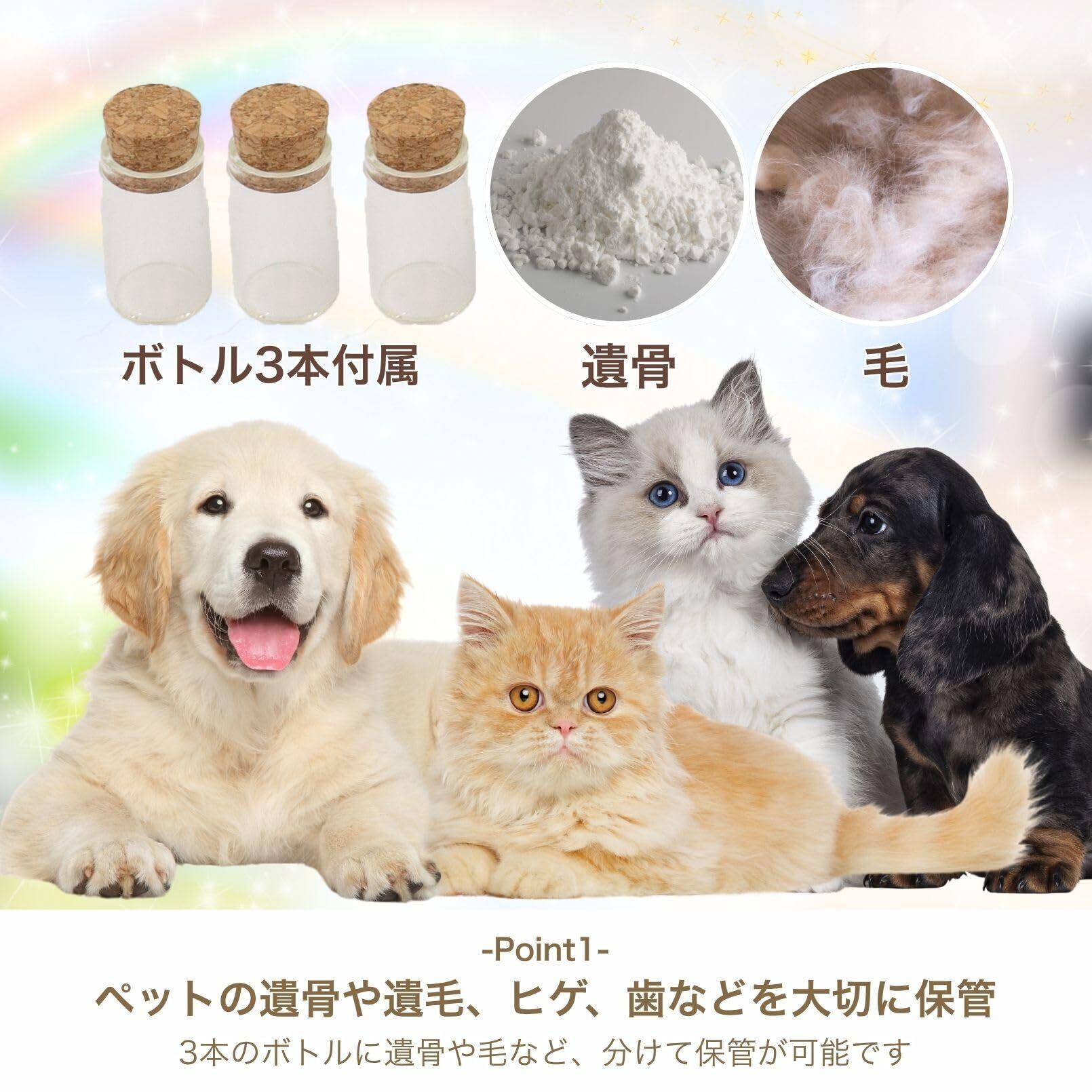 HALSUN ペットメモリアルケース 遺毛 遺骨入れ 骨壷 メモリアルボックス 仏具 ボトル3本付き