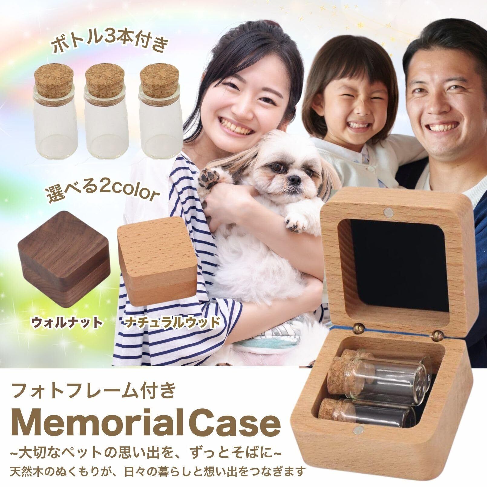 3本のボトル付きで、遺骨や遺毛、歯、骨、ヒゲ、爪など、遺品を分けて保存することができます。大切なペットの思い出といつまでも寄り添っていたい。残されたご家族のためのメモリアルケースです。
