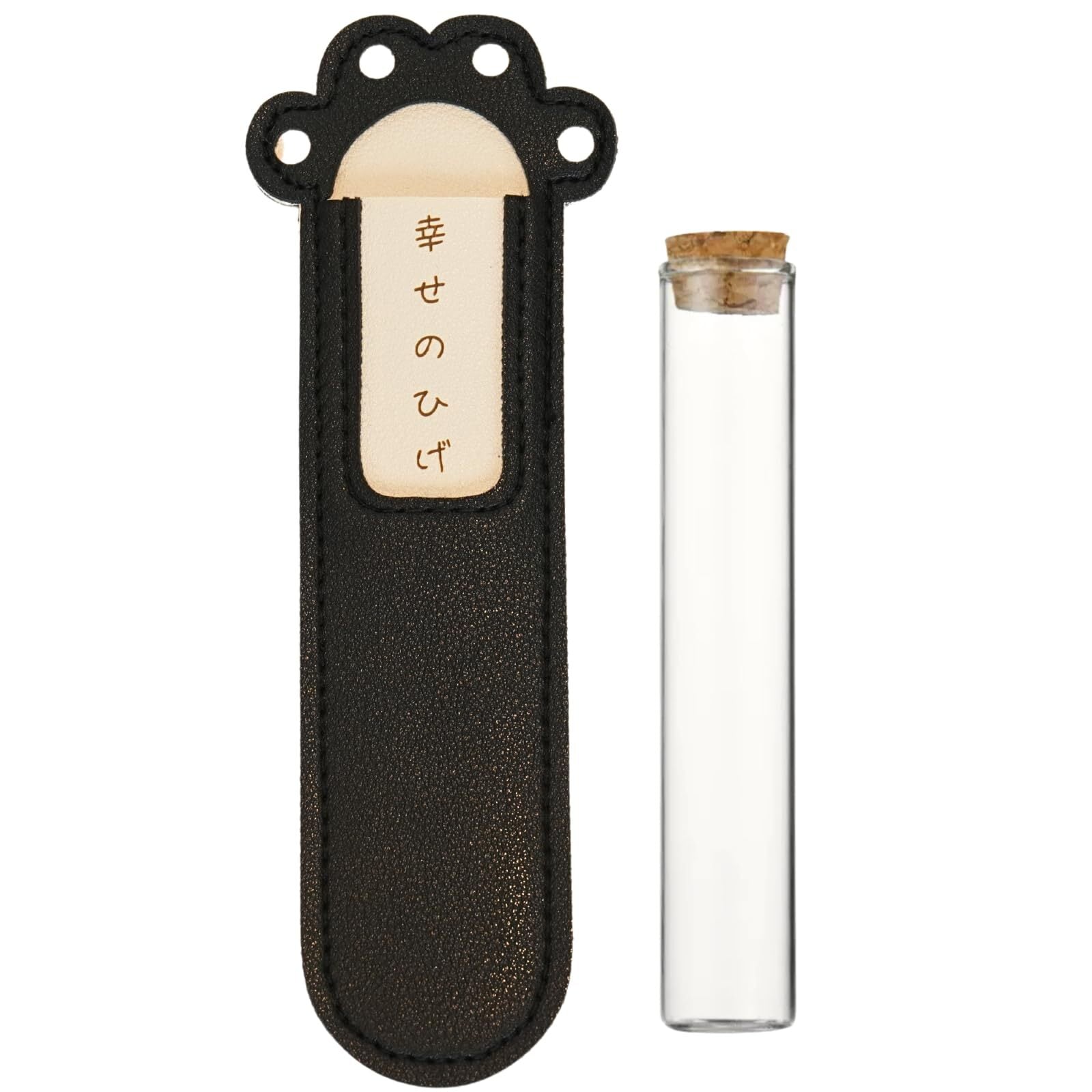FUWAMORI しあわせのヒゲ 猫のヒゲ保存ガラス瓶 革カバー付き 猫 ひげ 収納 二重構造 猫の毛収納 髭 ペットの思い出 保管 猫グッズ (ブラック)
