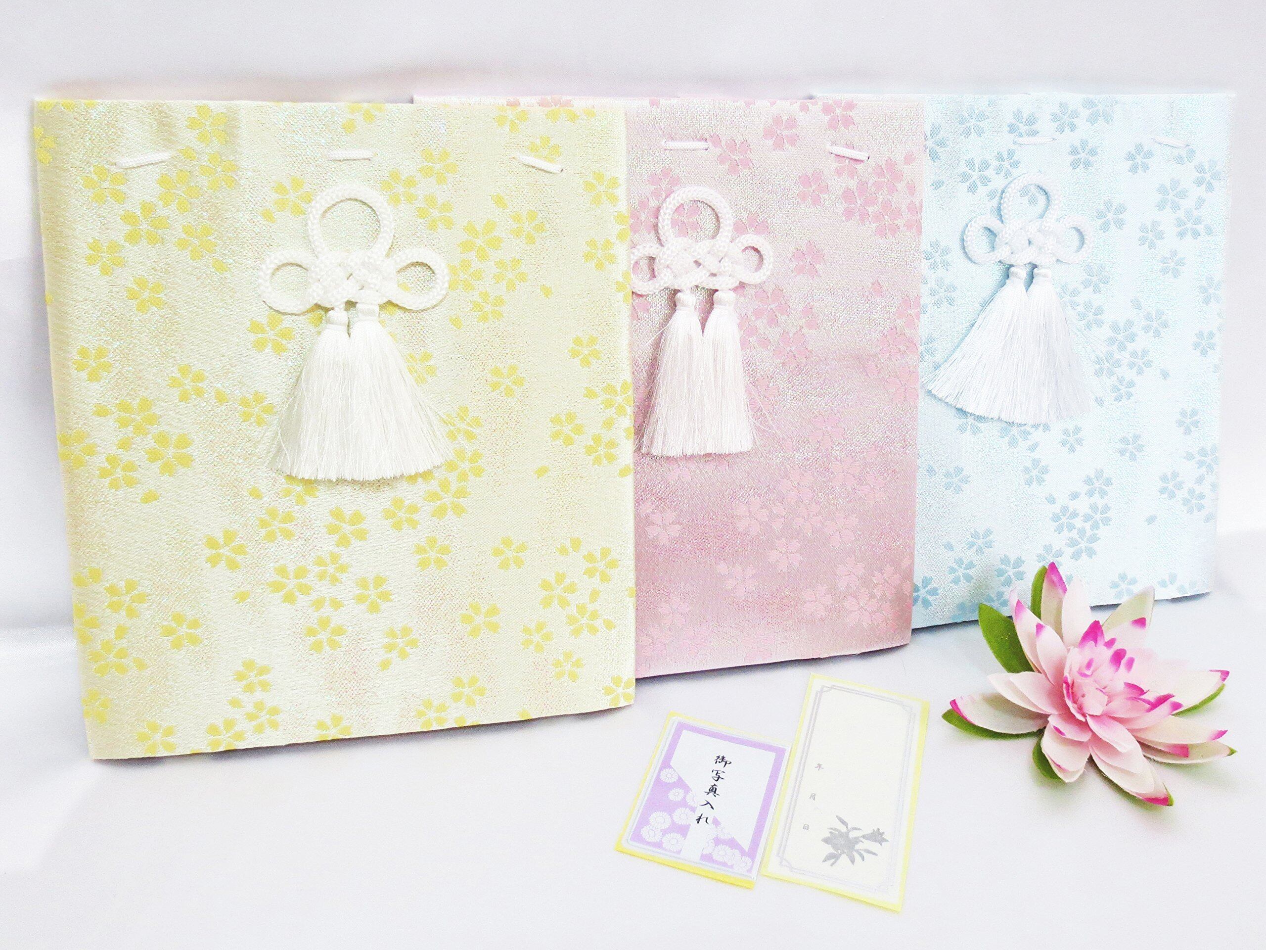 こちらは覆い袋(骨壷袋)のみのお届けとなります。戒名シールのデザインはお任せください。
