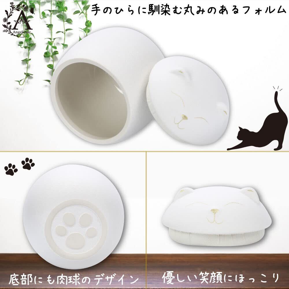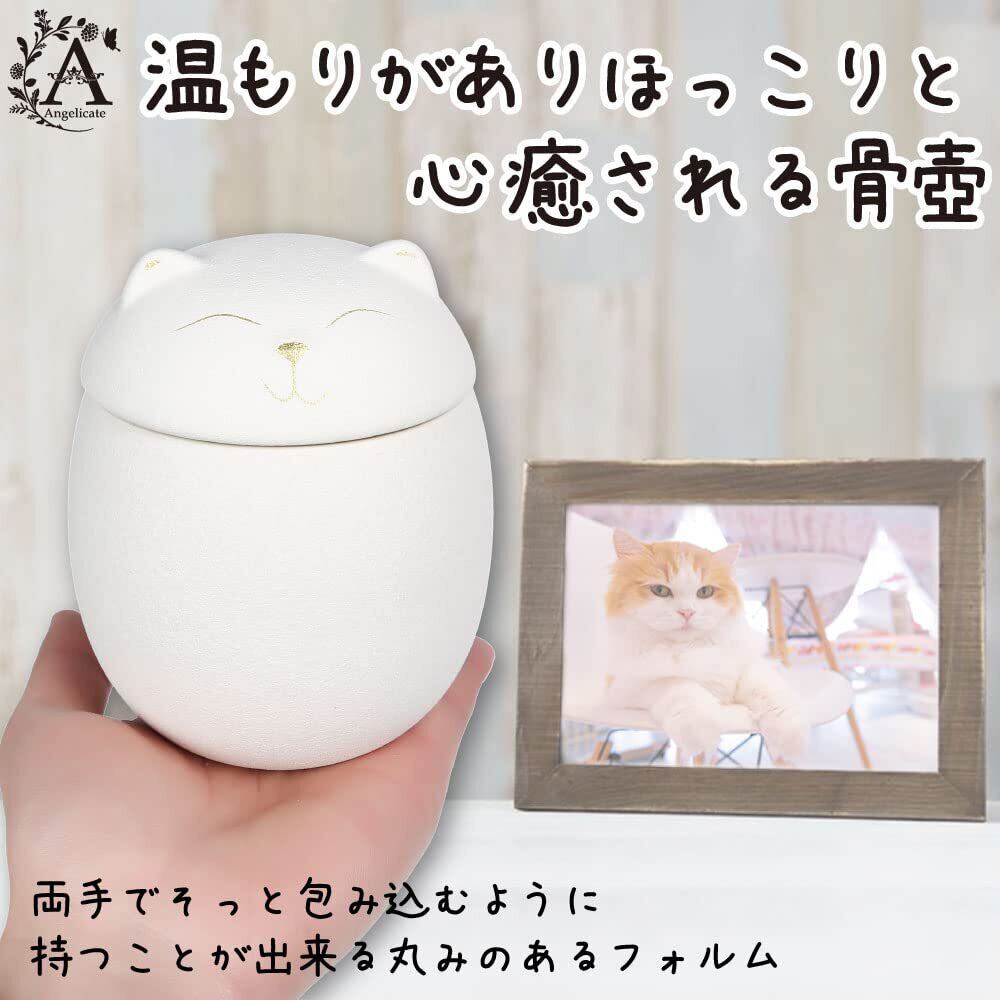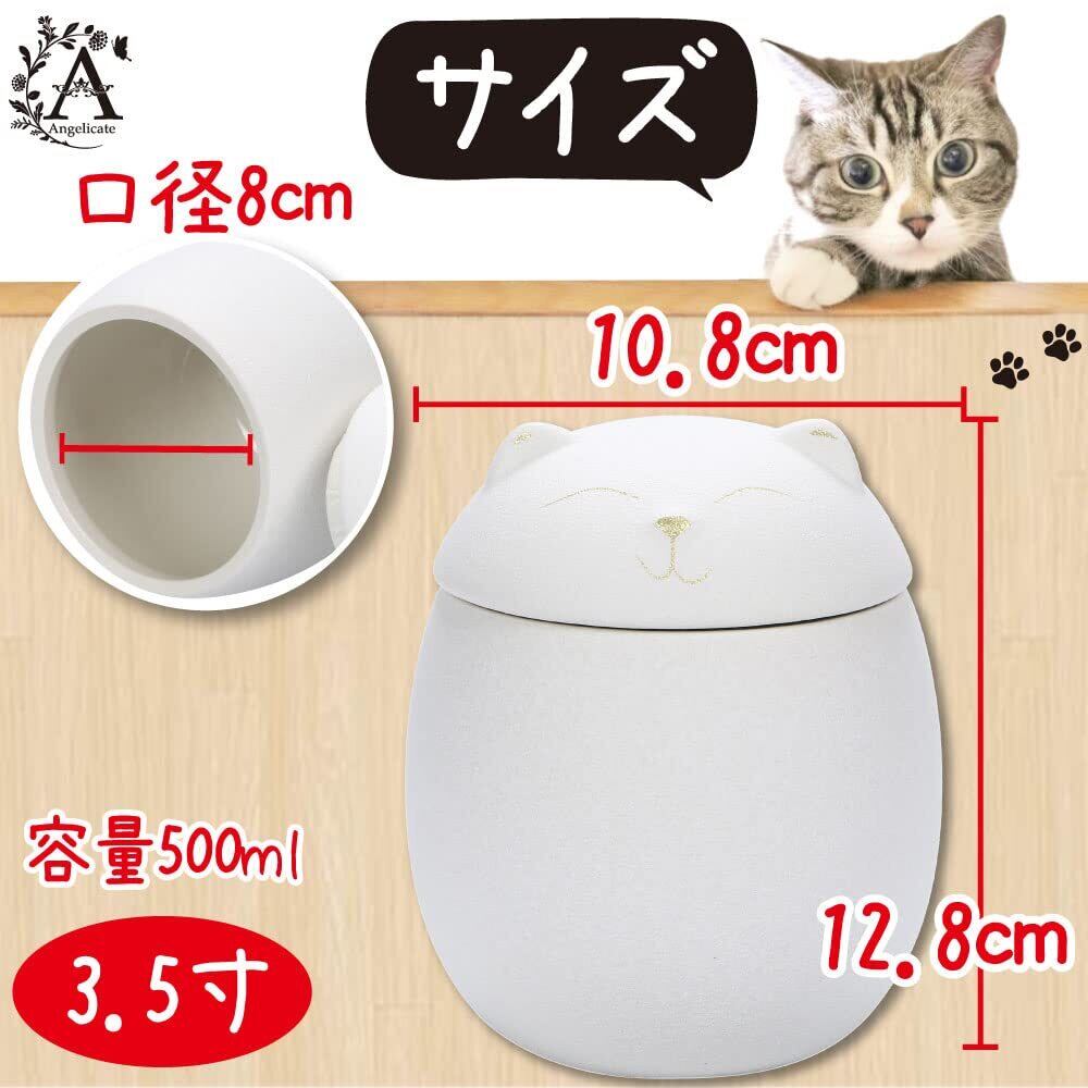 【Angelicate】骨壺 ペット 分骨 3.5寸 500ml 猫 犬 分骨壺 遺骨入れ 納骨 仏具 仏壇 (ネコ, ホワイト)