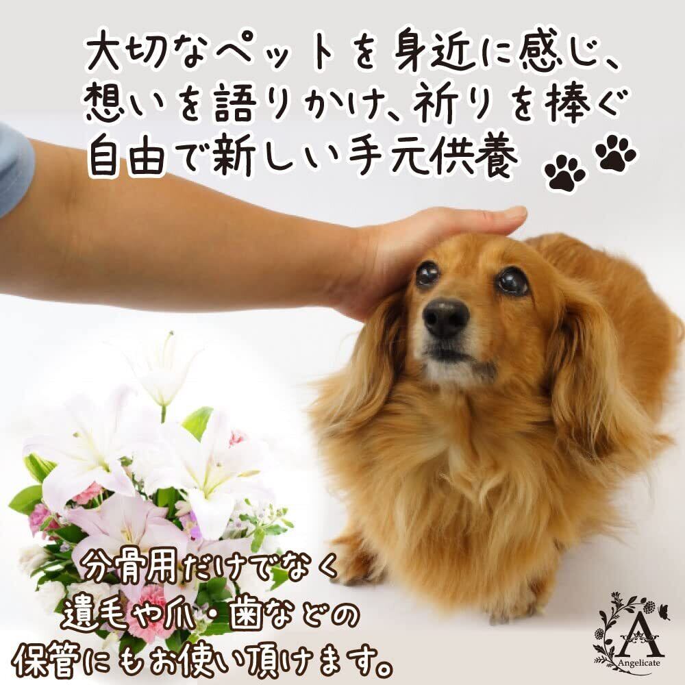 大切なペットを身近に感じ想いを語り掛け、祈りを捧ぐ、自由で新しい手元供養です。遺毛や歯・爪などの保管にもお使いいただけます。