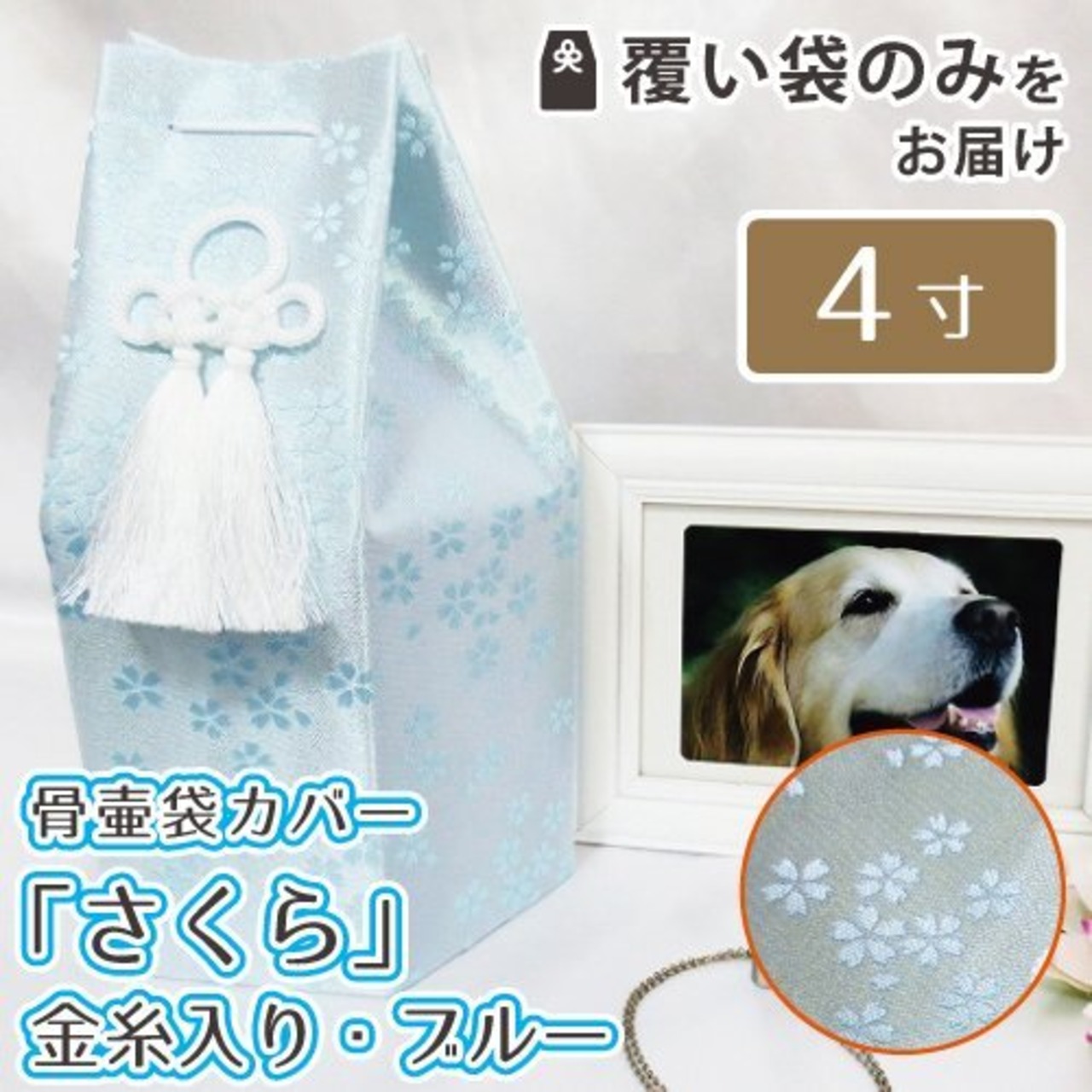 仏具 骨壷 4寸 金糸 さくら ブルー 覆い袋のみ 手元供養 骨壷カバー 骨袋