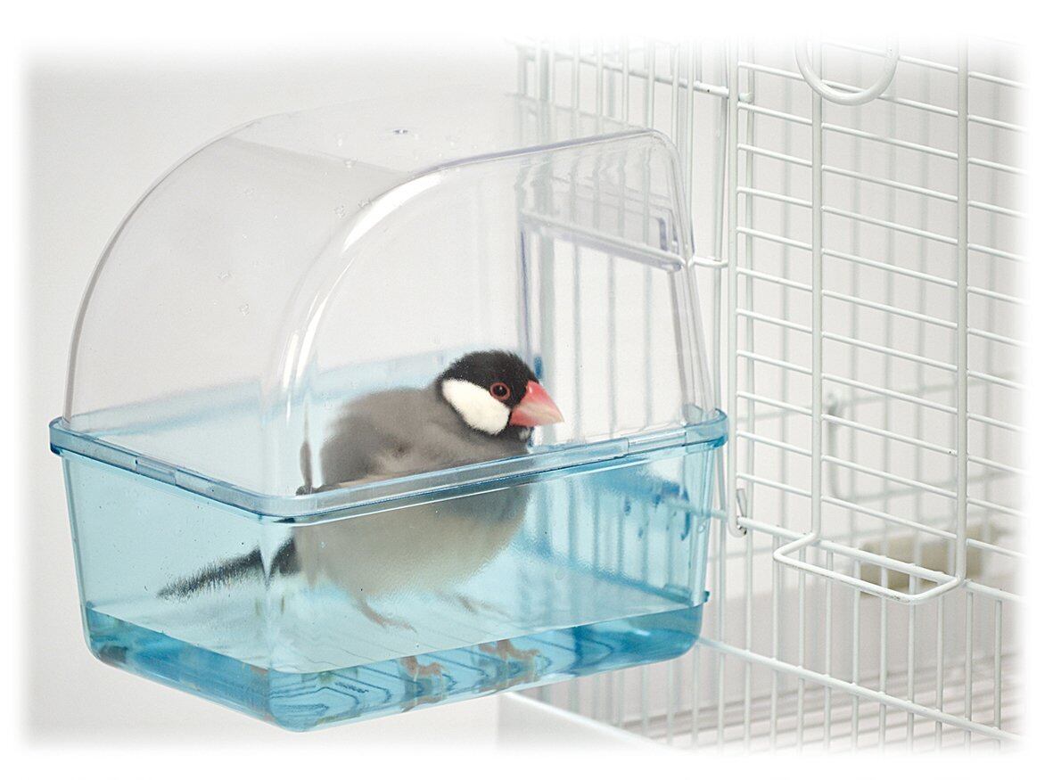 ケージ外付け式小鳥用の水浴び器。フィンチから小型、中型インコまで使えます。