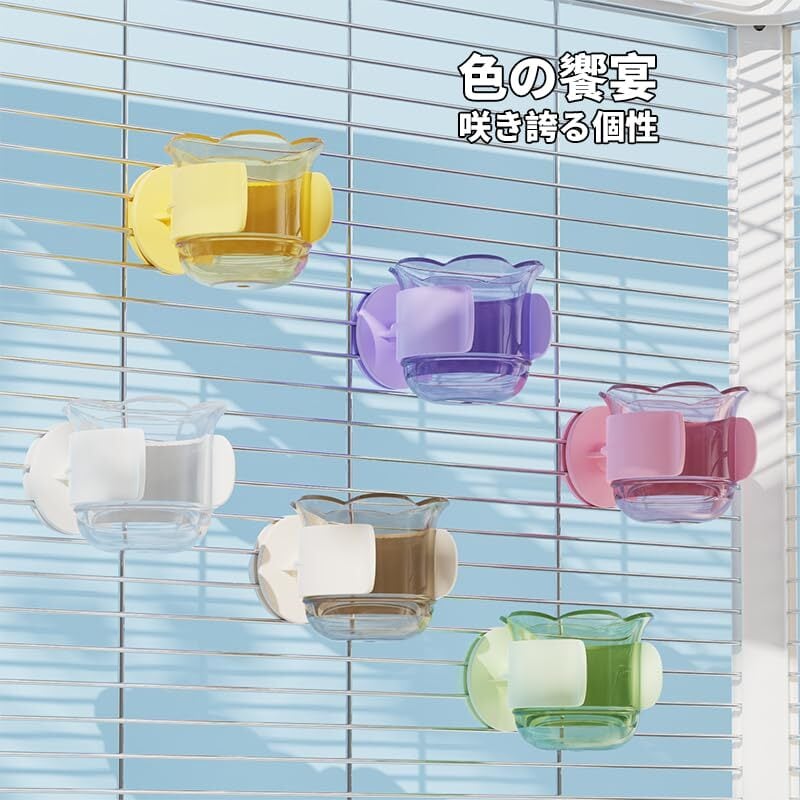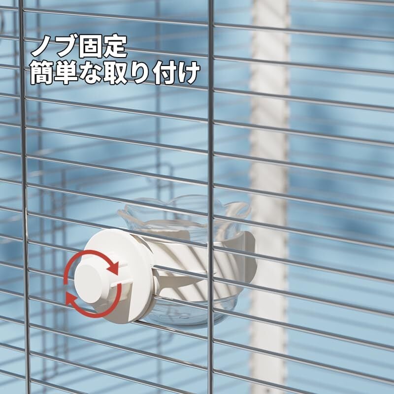 チューリップ型ボウルがひっくり返りを防止。縦設置・吊り下げの両対応。オウム/インコからハムスター・モルモットまで幅広い小動物に活用可能。