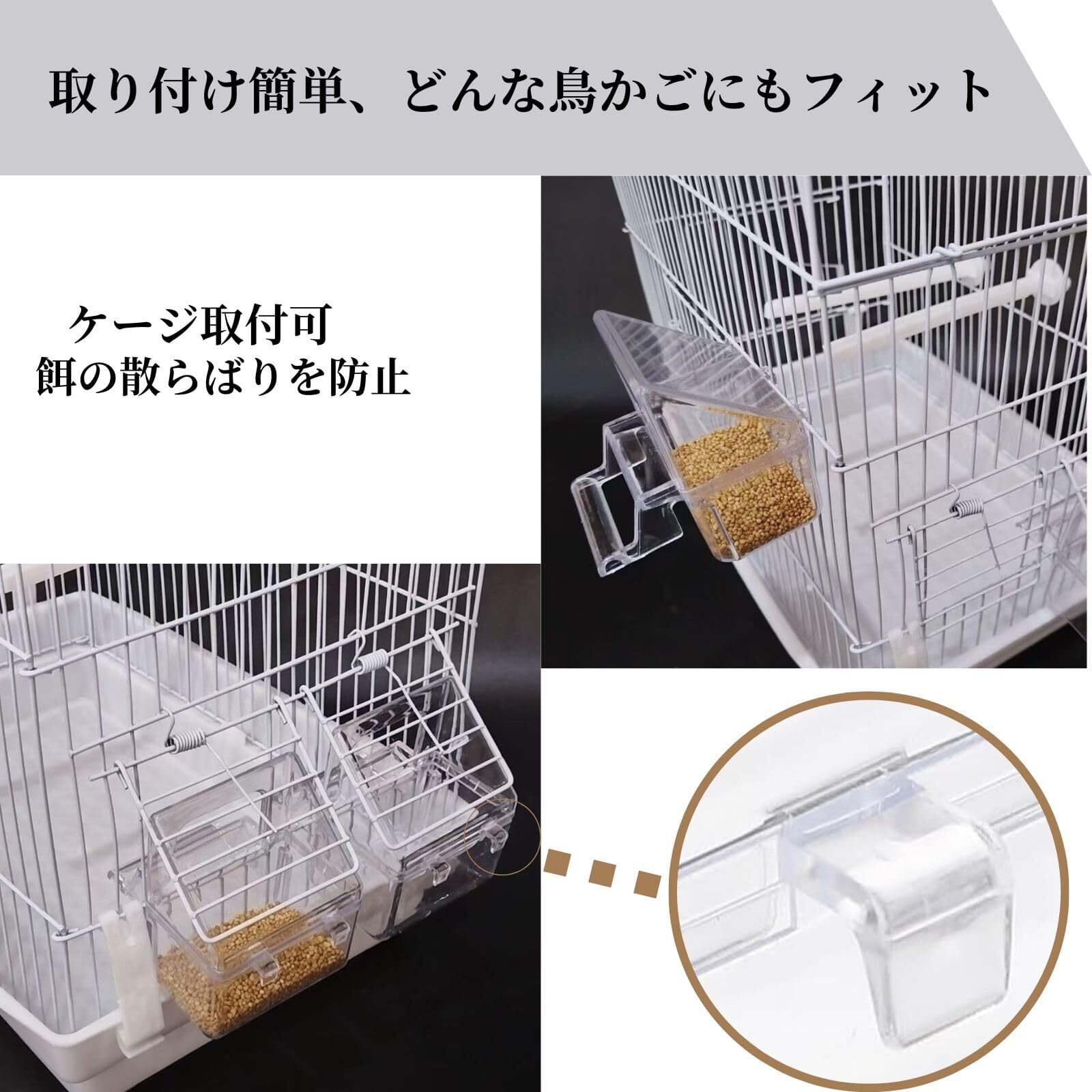 簡単な取り付けで便利 シンプルな設計で、どんな鳥かごにも簡単に取り付けられます。設置後すぐにご利用いただけます。