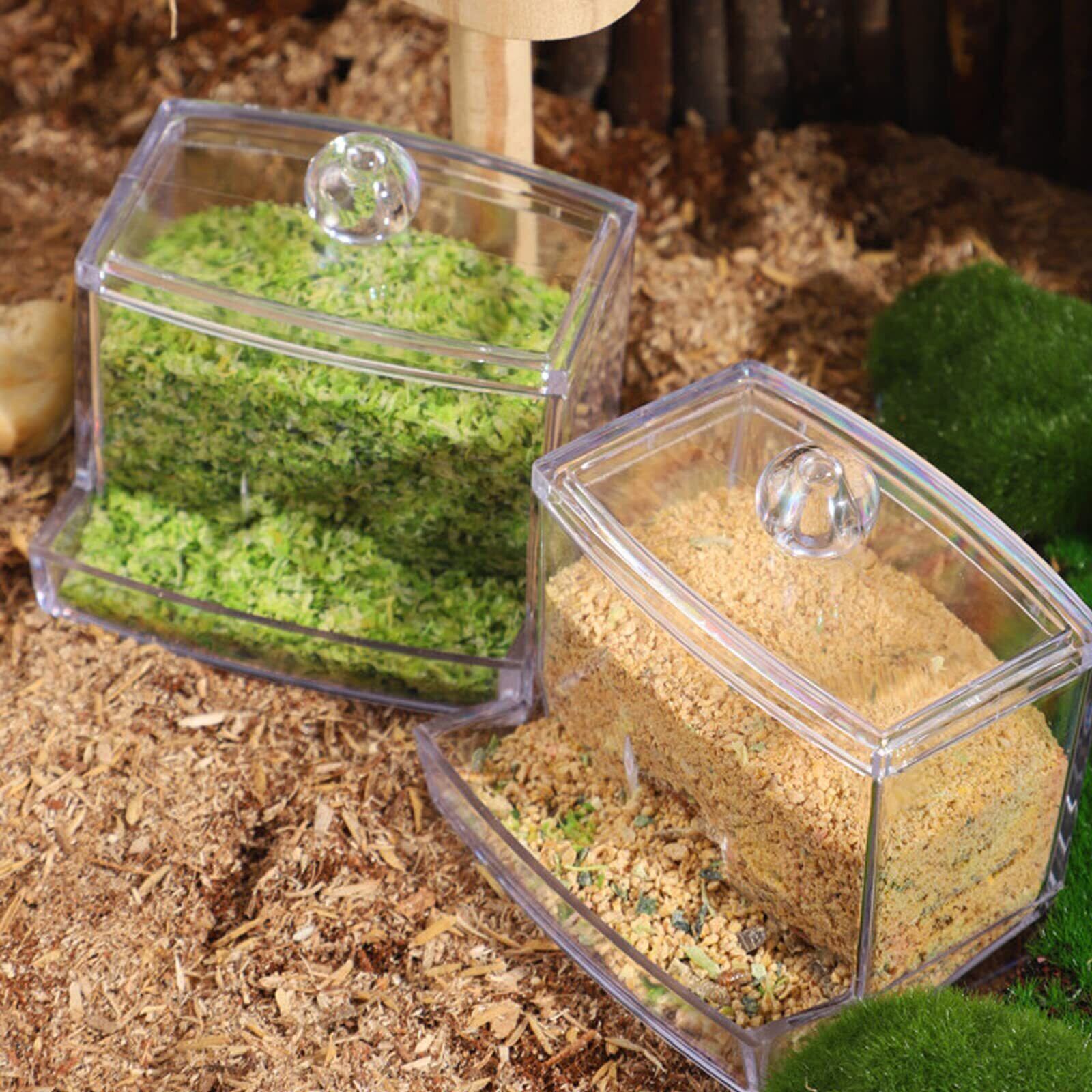 このペットフィーダーはプラスチック素材で作っています。サイズ:9 * 9 * 7cm。上部オープンカバーデザイン、給餌が簡単、1回の剥離と1回のリリース、給餌が簡単です。