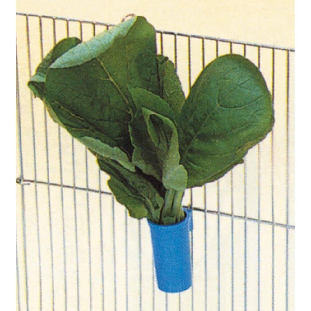 【使用方法】 青菜はビタミン、ミネラルなどの補給に必要なものです。ナサシに1/3位水を入れ、野菜が底に付くまで差し込み、止まり木の近くの金網に掛けて下さい。