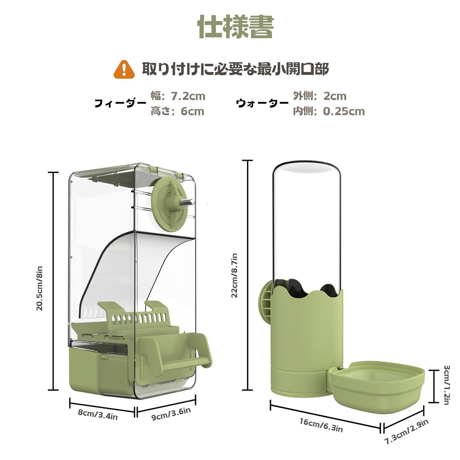 鳥 餌入れ 水入れ インコ 自動給餌器 給水器 ケージ取り付け 小鳥 文鳥 餌やり 水やり 2個セット (グリーン)