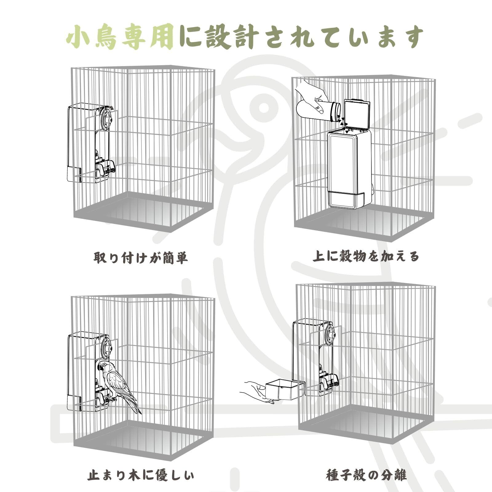 鳥 餌入れ インコ 自動給餌器 ケージ取り付け 鳥用 フードフィーダー 小鳥 文鳥 餌やり お留守番 (グリーン)