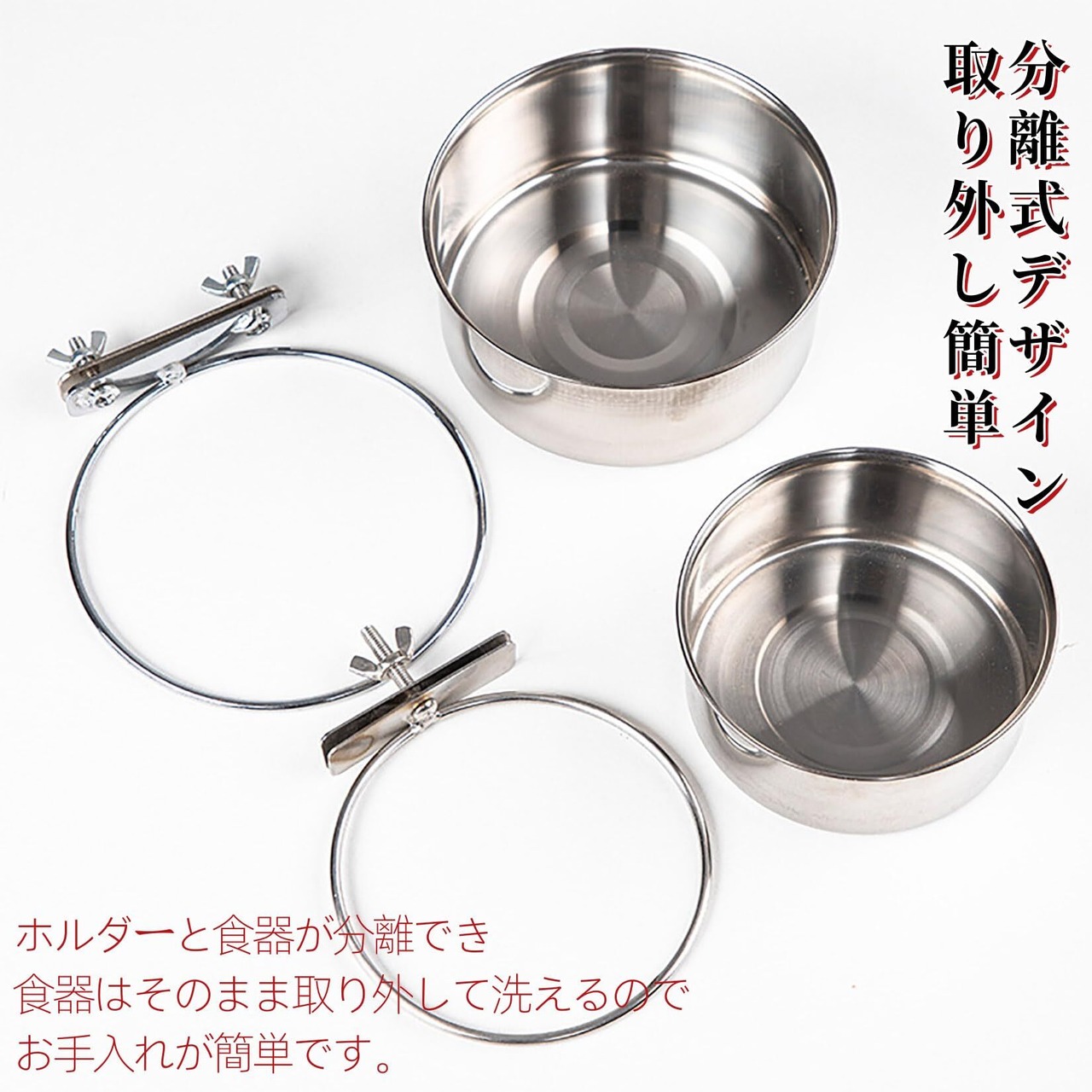 インコ・小動物用食器:水入れと餌入れの両方に対応できる、ステンレス製の多用途フィーダー。インコや文鳥、オウムなど様々な小鳥に最適です。