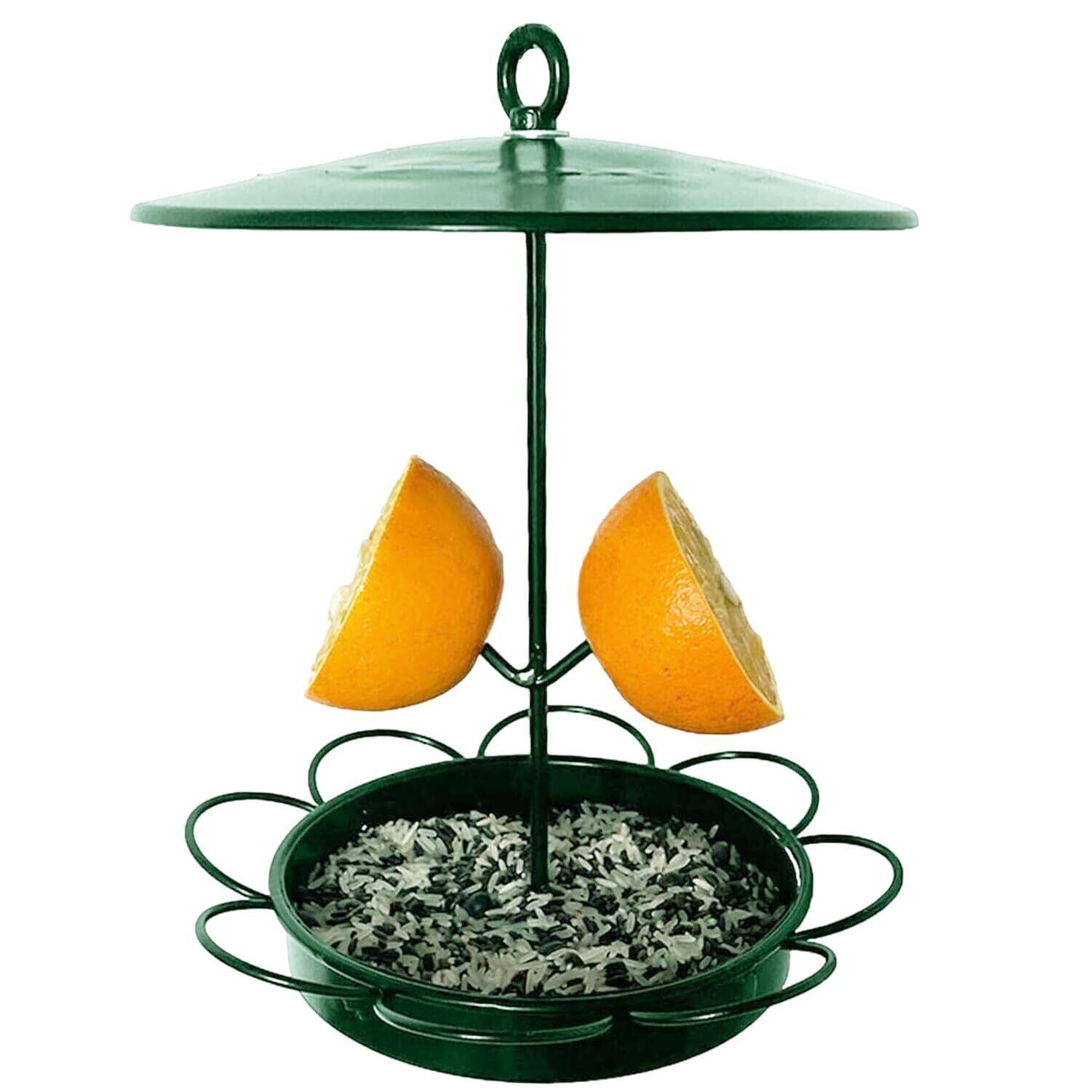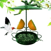 鳥の餌箱 バードフィーダー 野鳥の餌箱 鳥の給餌トレイ 鳥愛好家に最適! フック付き 果物をフックに吊るして餌を与えることができます! (グリーン)
