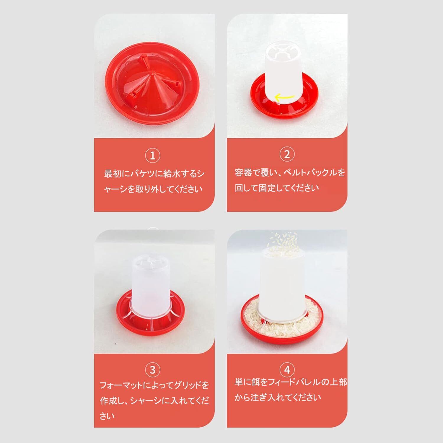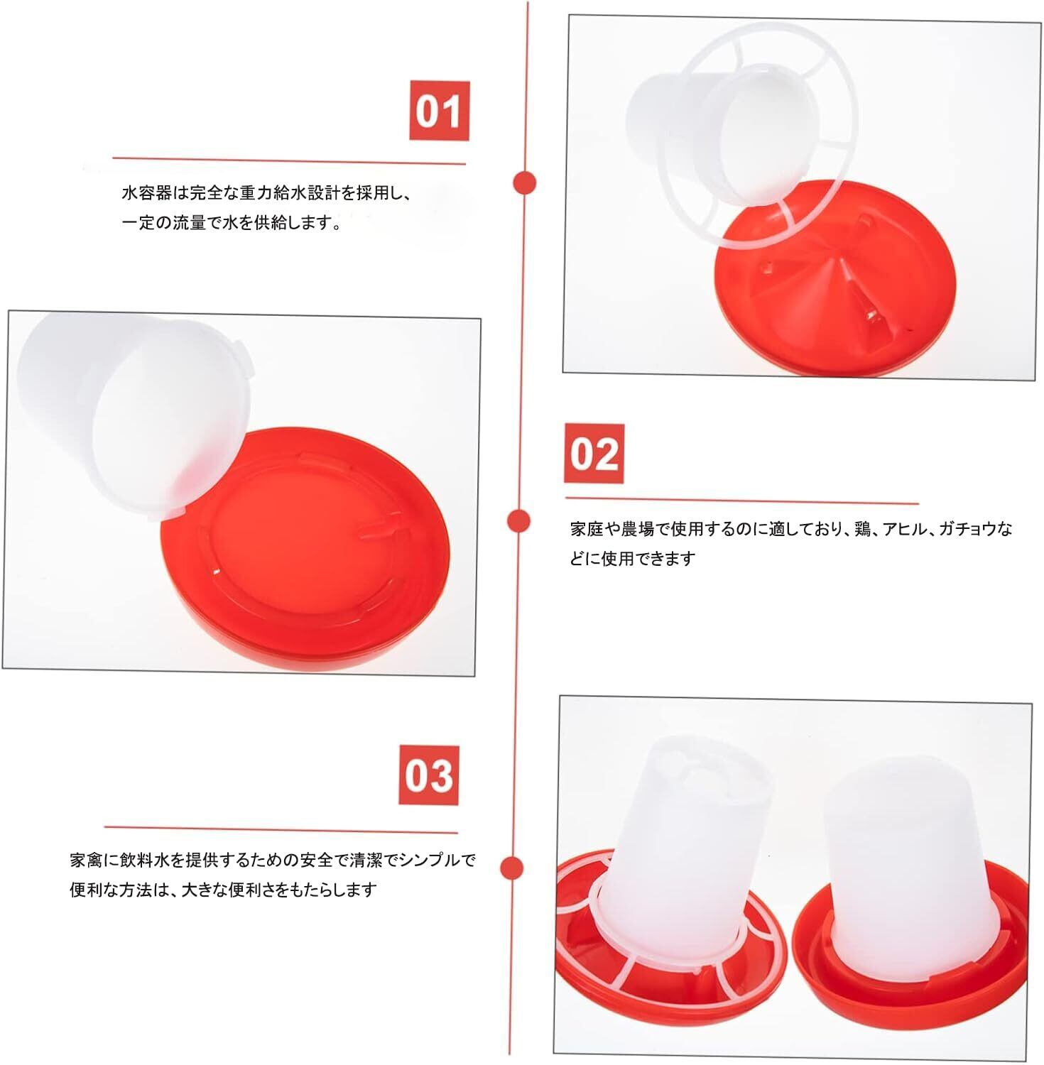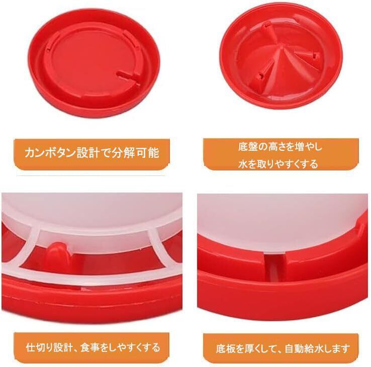 [自動給水器]の水バケツは自動放水設計を採用し、簡単で便利です。このものは鶏や小鳥のための餌箱です。その鳥 餌入れの設計は食べ物を効率的に提供するだけでなく、清潔で衛生的な環境を維持することも考慮しています。鳥 餌入れの使用と組み合わせることで、あなたのペットに最高の世話を提供し、時間と労力を節約できます。快適で便利な鳥 餌入れを選び、飼育のストレスから解放されましょう!