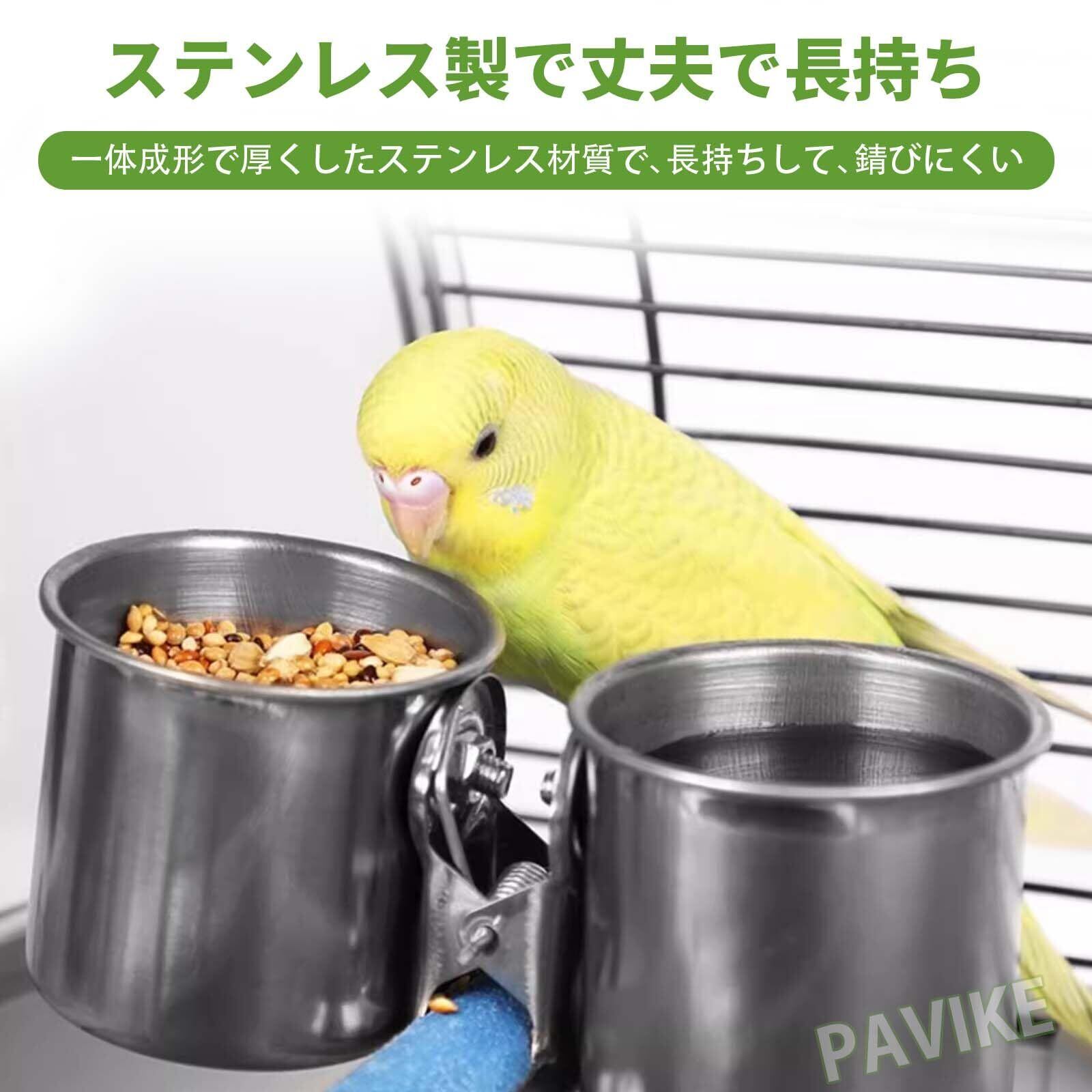 PAVIKE 鳥 餌入れ 小さい インコ水入れ 2個セット 小型 深型 クリップ付き ステンレス製 防錆 鳥用 フードフィーダー バード食器 給餌器 小鳥 文鳥 小動物 餌やり