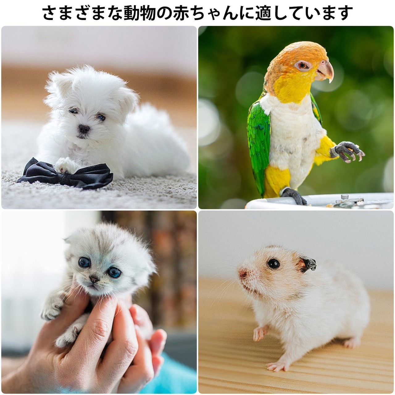 【幅広い用途】このシリンジは、さまざまな鳥類(オウム、インコ、文鳥など)だけでなく、子猫、子犬、ウサギ、ハムスターなど、さまざまな小動物にも使用できます。