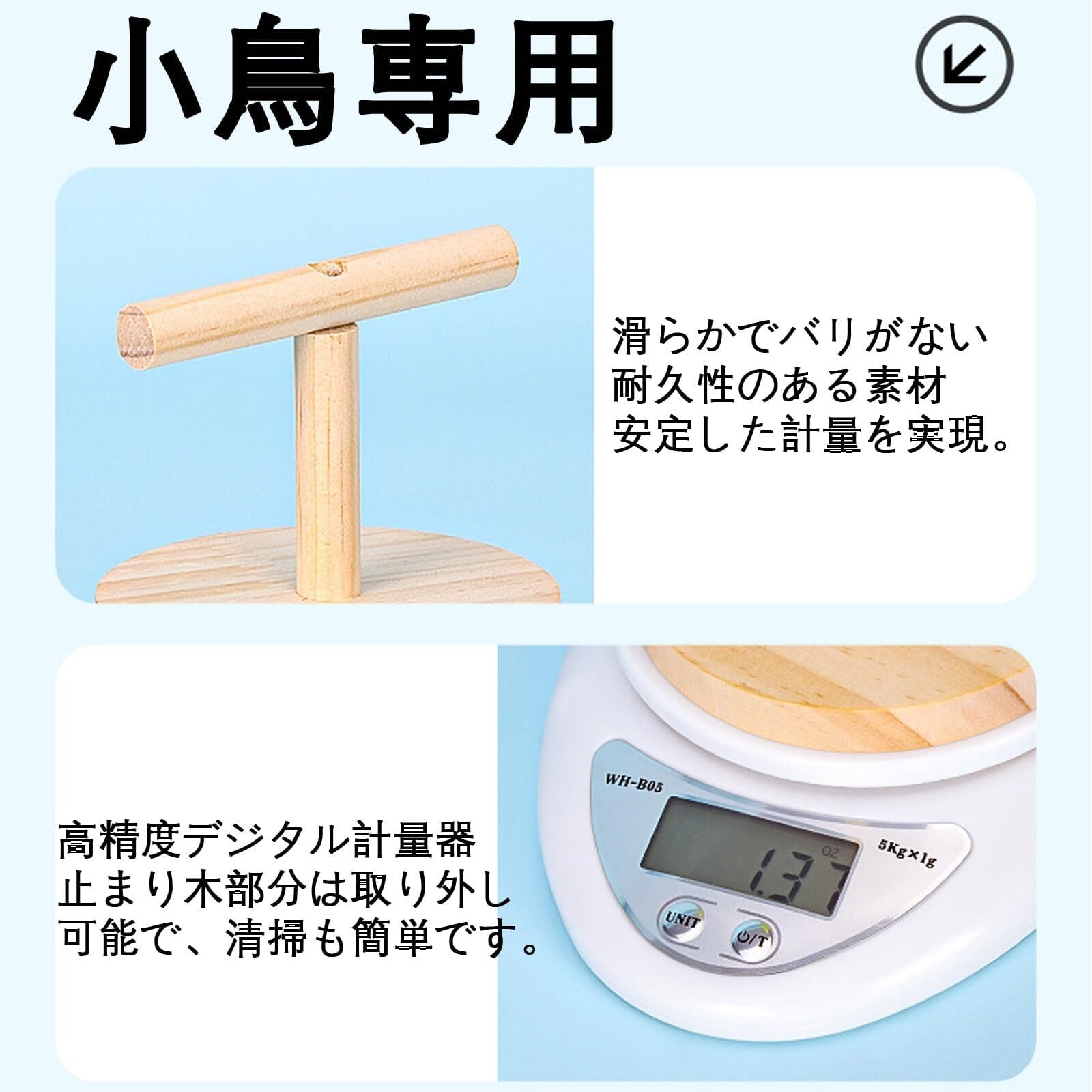 【小鳥専用ケール】このペットスケールは、小鳥の体重管理に特化した設計です。止まり木に慣れると、鳥ちゃんが自ら乗ってくれるため、毎日の計測がラクに。体調管理や餌の量調整に役立つ、愛鳥家必携のアイテムです。