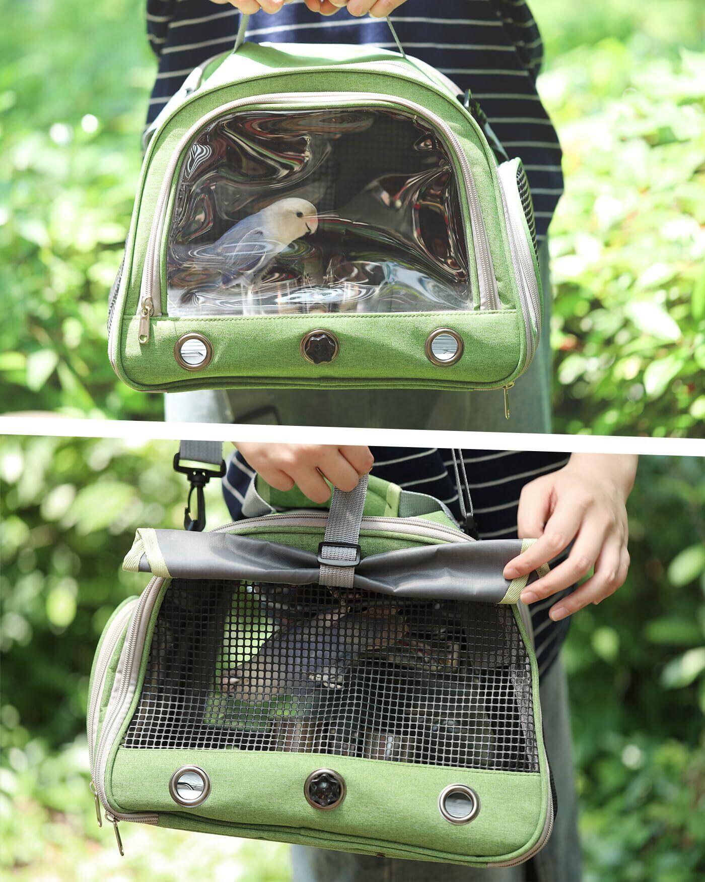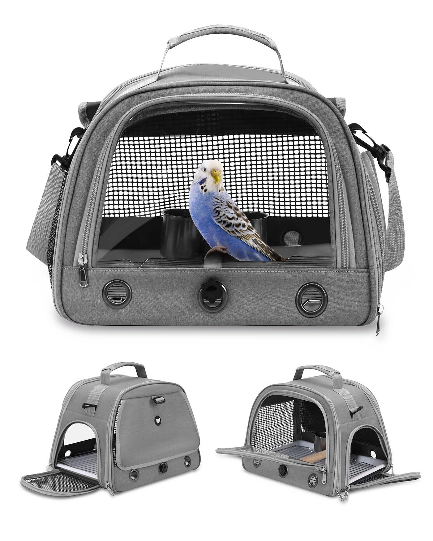 YUCHONG 鳥 キャリーバッグ インコ キャリー 止まり木付き セキセイインコ 文鳥 オカメインコ キャリーケース 折り畳み式 通気 透明 バードケージ お出かけ 通院 移動 防災 持ち運び 餌入れ付き