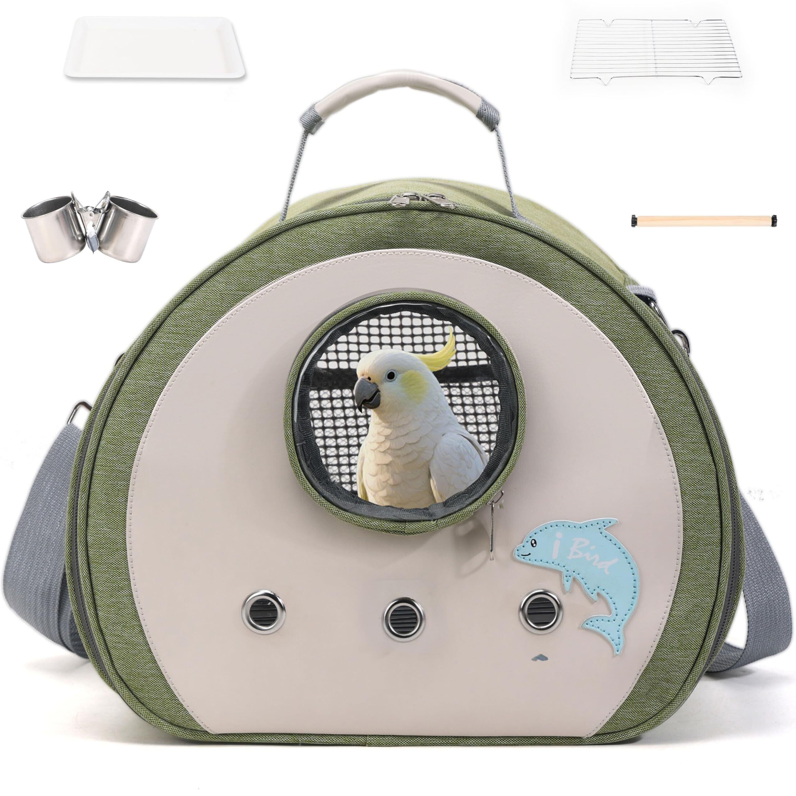 Hopeholic 最新型 鳥 キャリー 移動用ケージ 手提げ/肩掛け インコ 文鳥 手乗り キャリー リュック 豪華セット可愛い 軽量 止まり木付き 餌入れ 鳥 バード ケージ キャリーケース 持ち運び 散歩 避難 通院 おでかけ 鳥かご 移動用 折りたたみ式 (グリーン)