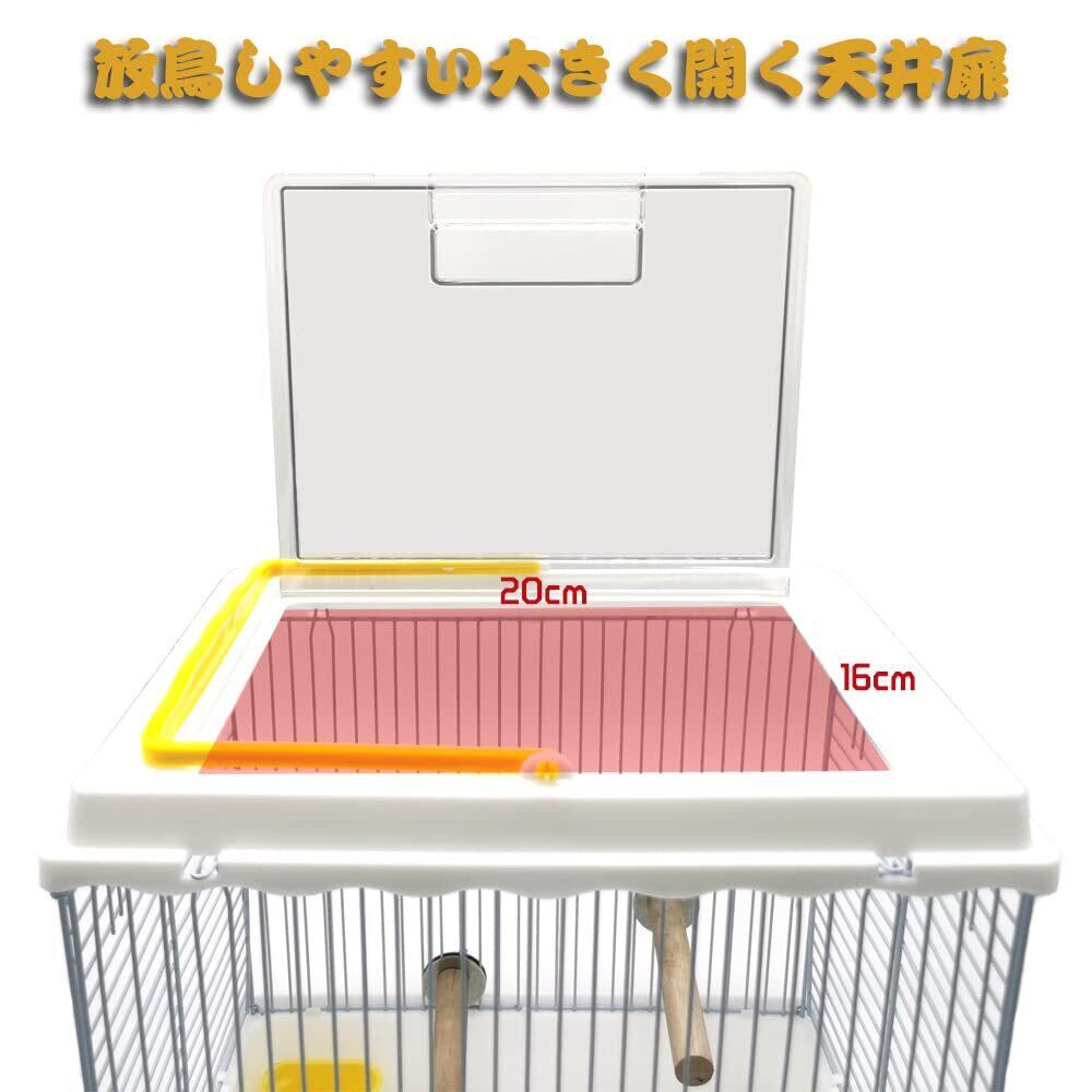 鳥かごは外寸W27×D21×H30cmで、文鳥やキンカチョウなどのフィンチからセキセイインコ、オカメインコなどの小型インコ中型インコまでがゆったり過ごせます。