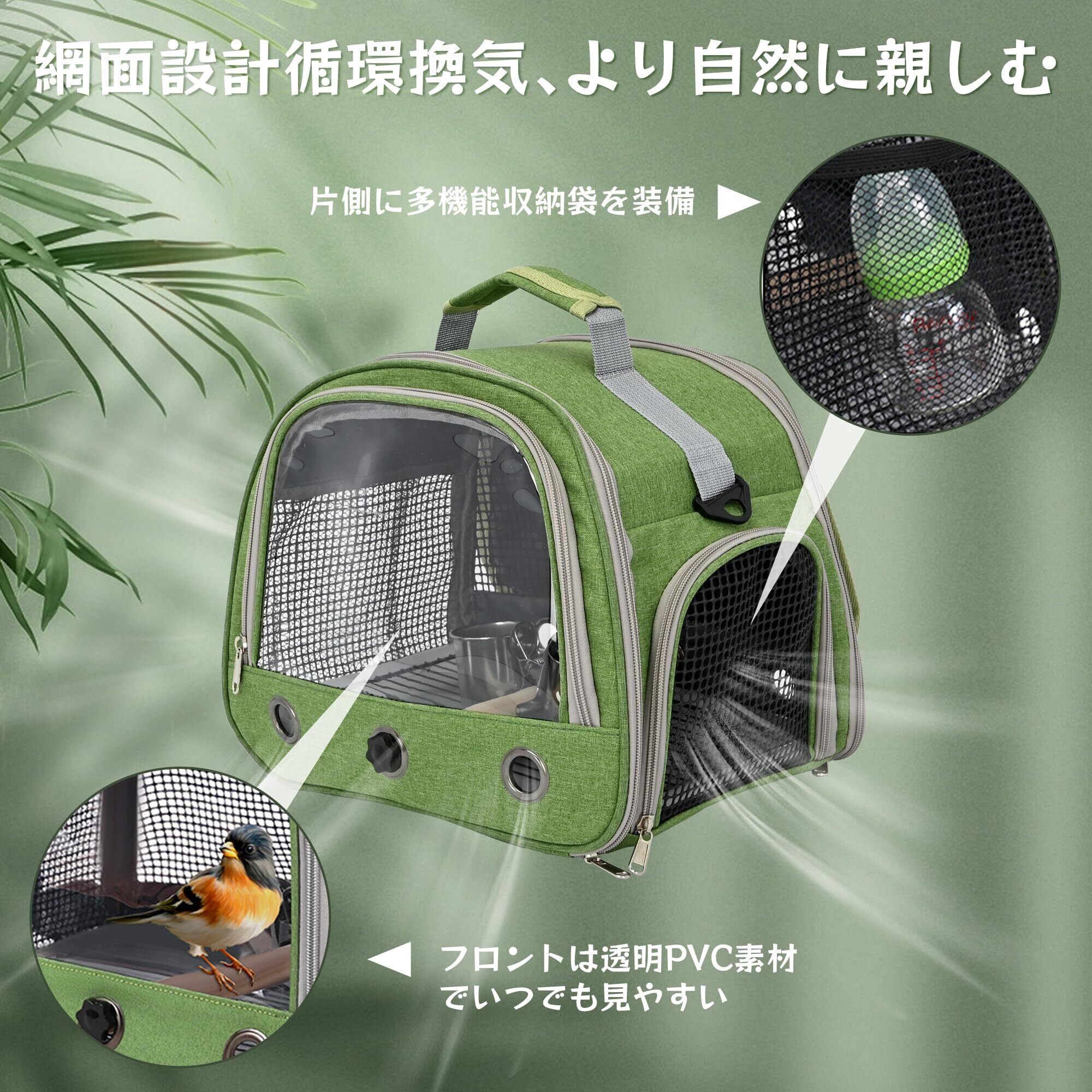 【数量限定】rloao 鳥 キャリーバッグ 手提げ 肩掛け カーテン付き 鳥かご 移動用キャリーオカメインコ 止まり木付き 餌入れ 折り畳み式 通気 透明 インコ ケージ 光をさける 寝 bird bag 持ち運び 散歩 避難 通院 防災 おでかけ 鳥用キャリーケース仕切り付き グリーン | wakuwakuland