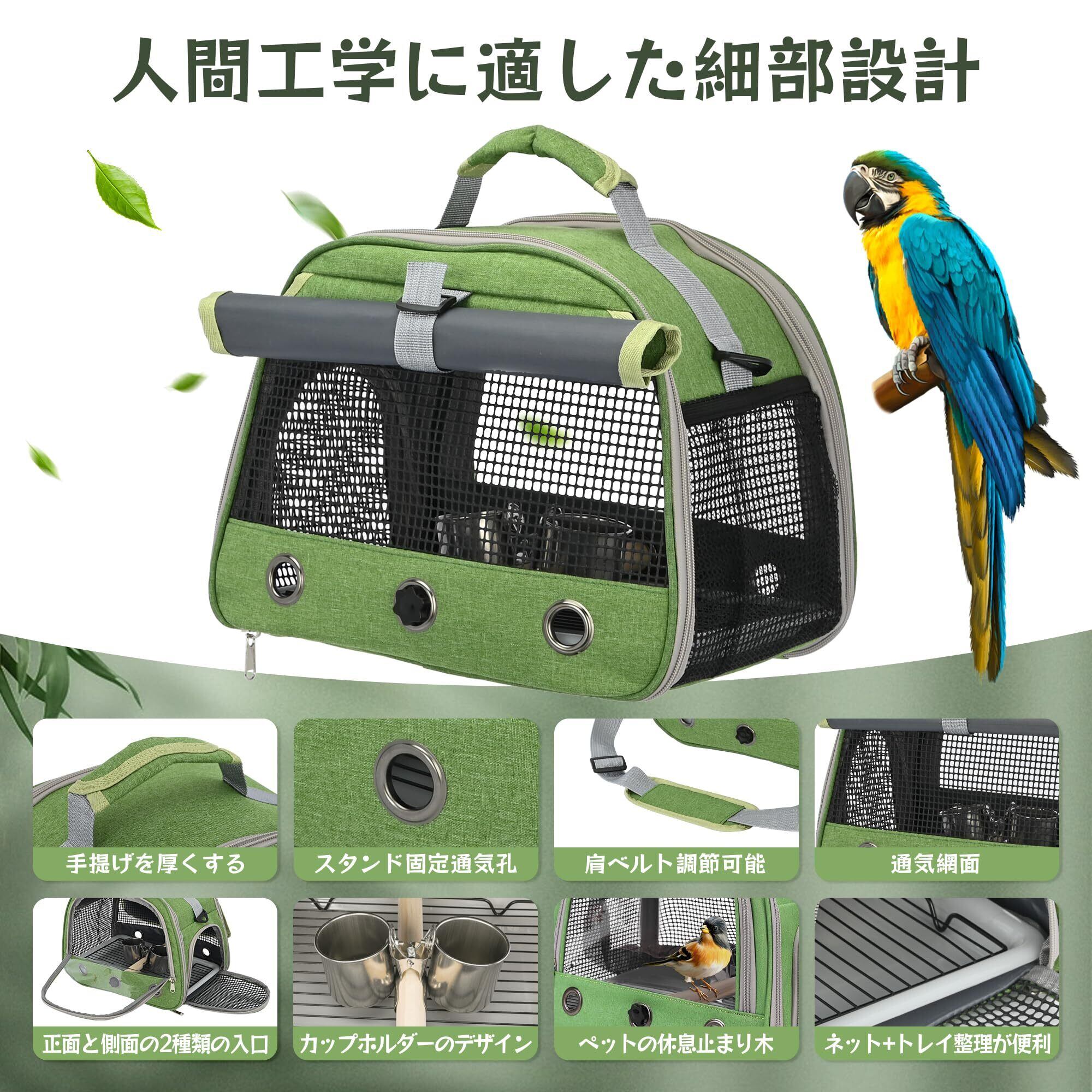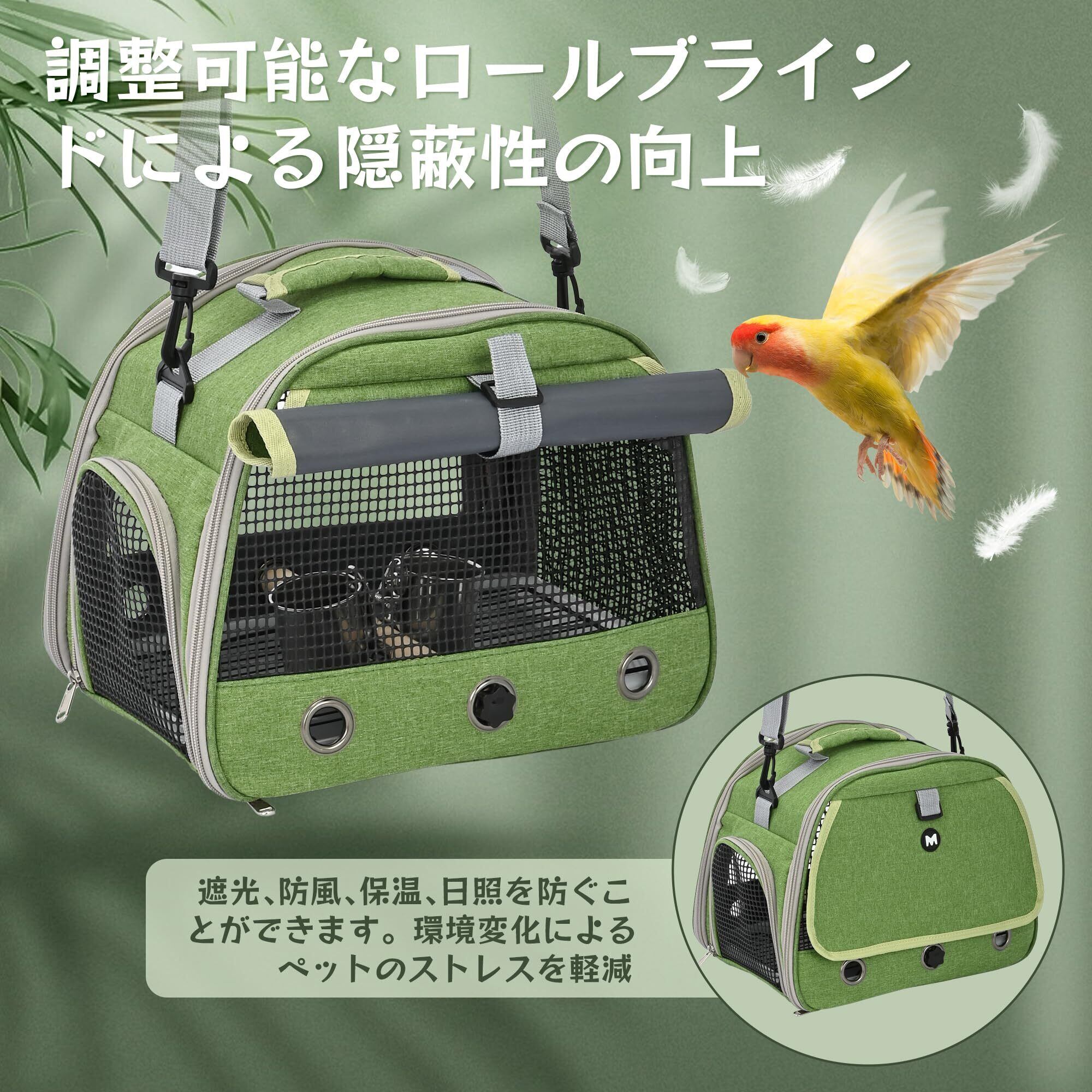 rloao 鳥 キャリーバッグ 手提げ 肩掛け カーテン付き 鳥かご 移動用キャリーオカメインコ 止まり木付き 餌入れ 折り畳み式 通気 透明 インコ ケージ 光をさける 寝 bird bag 持ち運び 散歩 避難 通院 防災 おでかけ 鳥用キャリーケース仕切り付き グリーン
