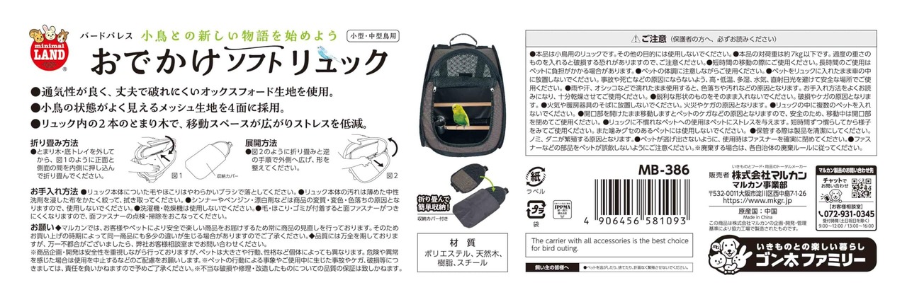 ミニマルランド バードパレス おでかけソフトリュック