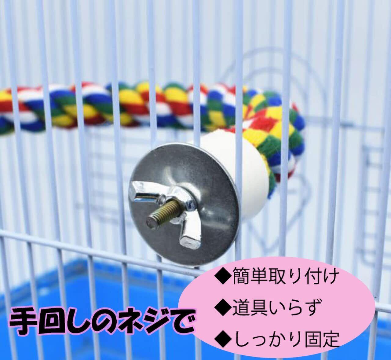 カラフルなカラーのロープは鳥かごの中を明るく華やかにしてくれます。