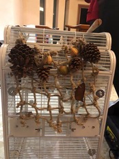 ・鳥かごに付属フックで簡単に設置ができ、ネットに取り付けられているオモチャはそれぞれ取り外しが可能です。