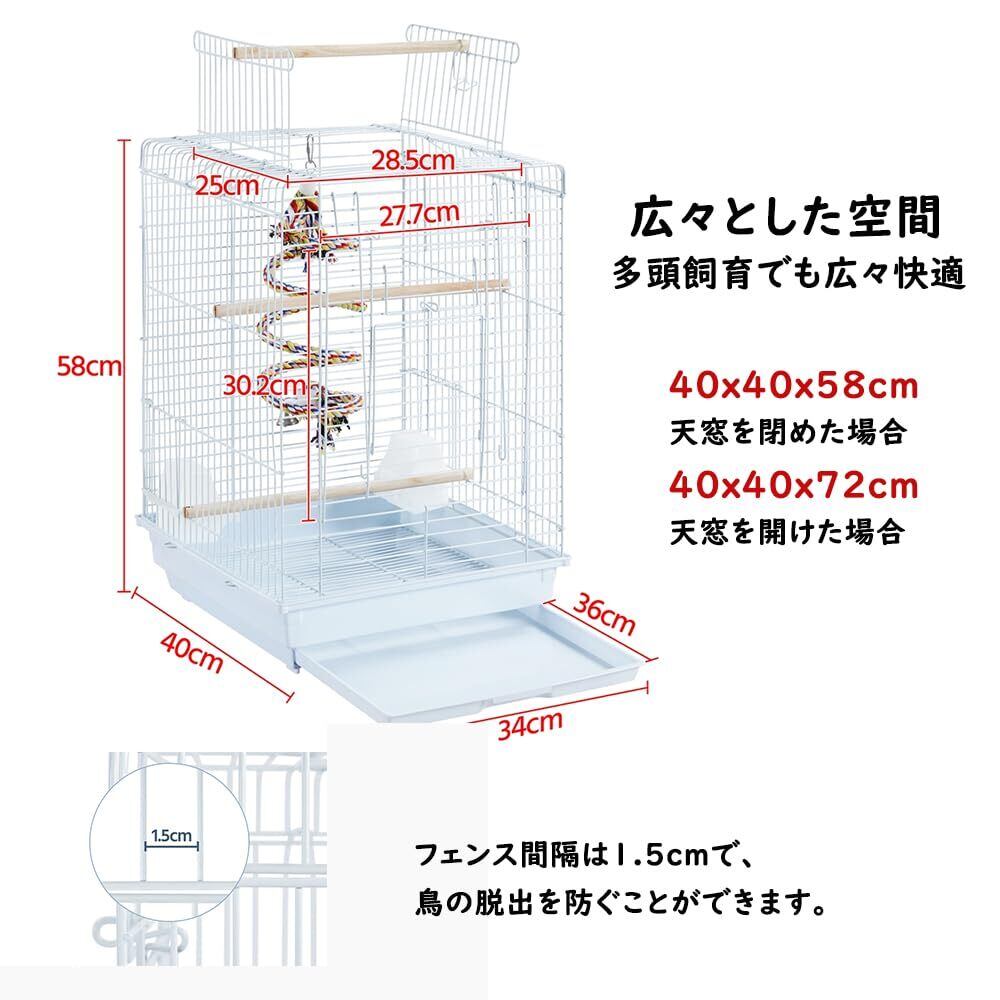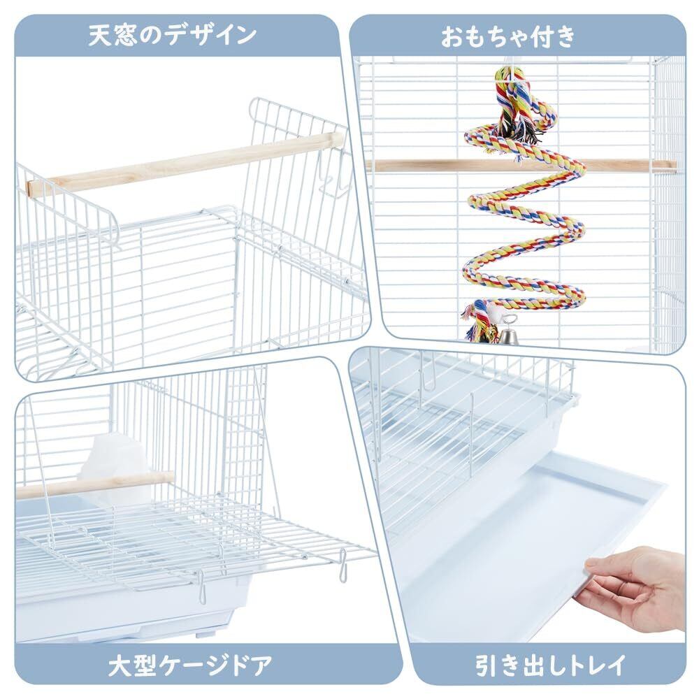 【在庫処分】Yaheetech 鳥かご 中型 バードcage セキセイインコケージ 鳥小屋 複数飼い 天窓あり 餌入れ 引き出しトレイ ハンドルあり ブランコあり おもちゃ付き 40x40x58cm オウムケージ オカメ コガネメキシコ コザクラ マメルリハ ウロコ アキクサ ペット用品 携帯便利 (ホワイト) | wakuwakuland