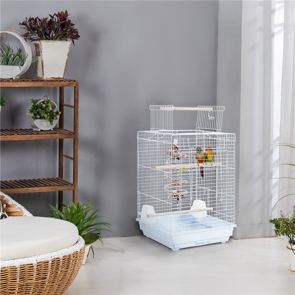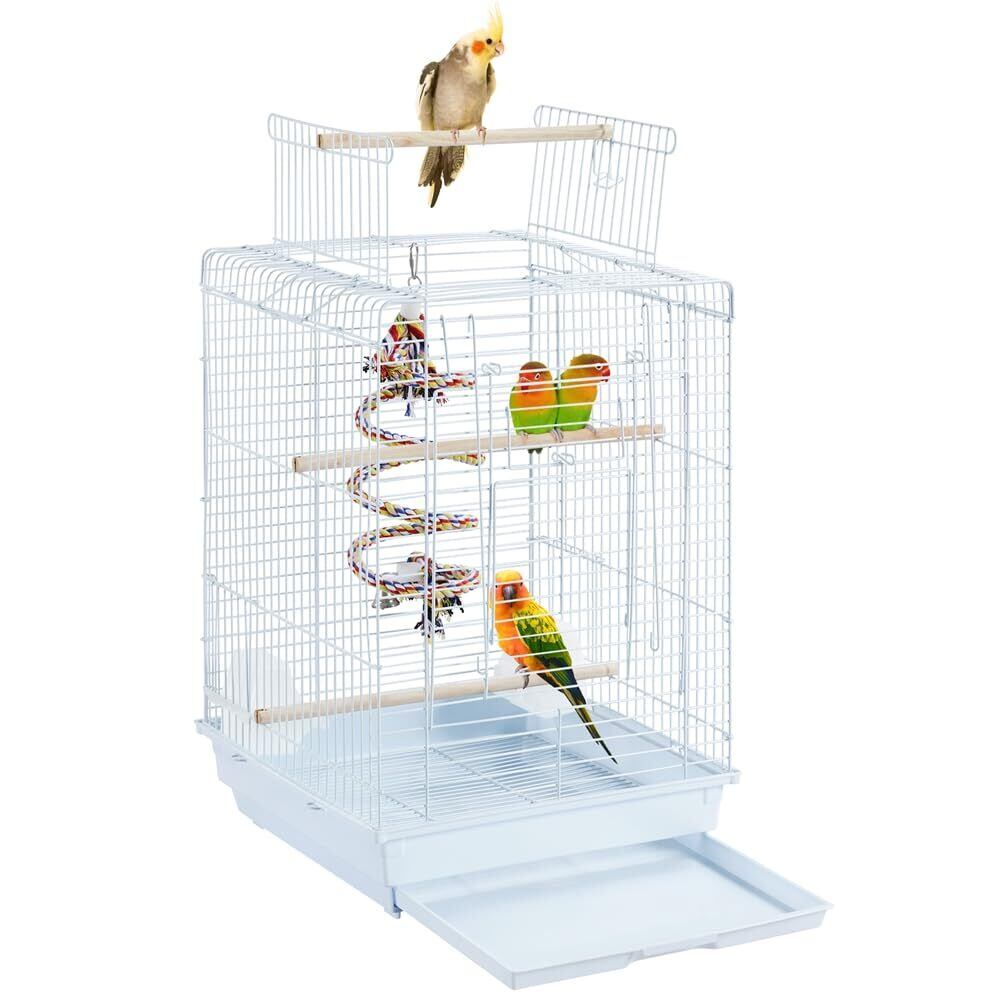 Yaheetech 鳥かご 中型 バードcage セキセイインコケージ 鳥小屋 複数飼い 天窓あり 餌入れ 引き出しトレイ ハンドルあり ブランコあり おもちゃ付き 40x40x58cm オウムケージ オカメ コガネメキシコ コザクラ マメルリハ ウロコ アキクサ ペット用品 携帯便利 (ホワイト)
