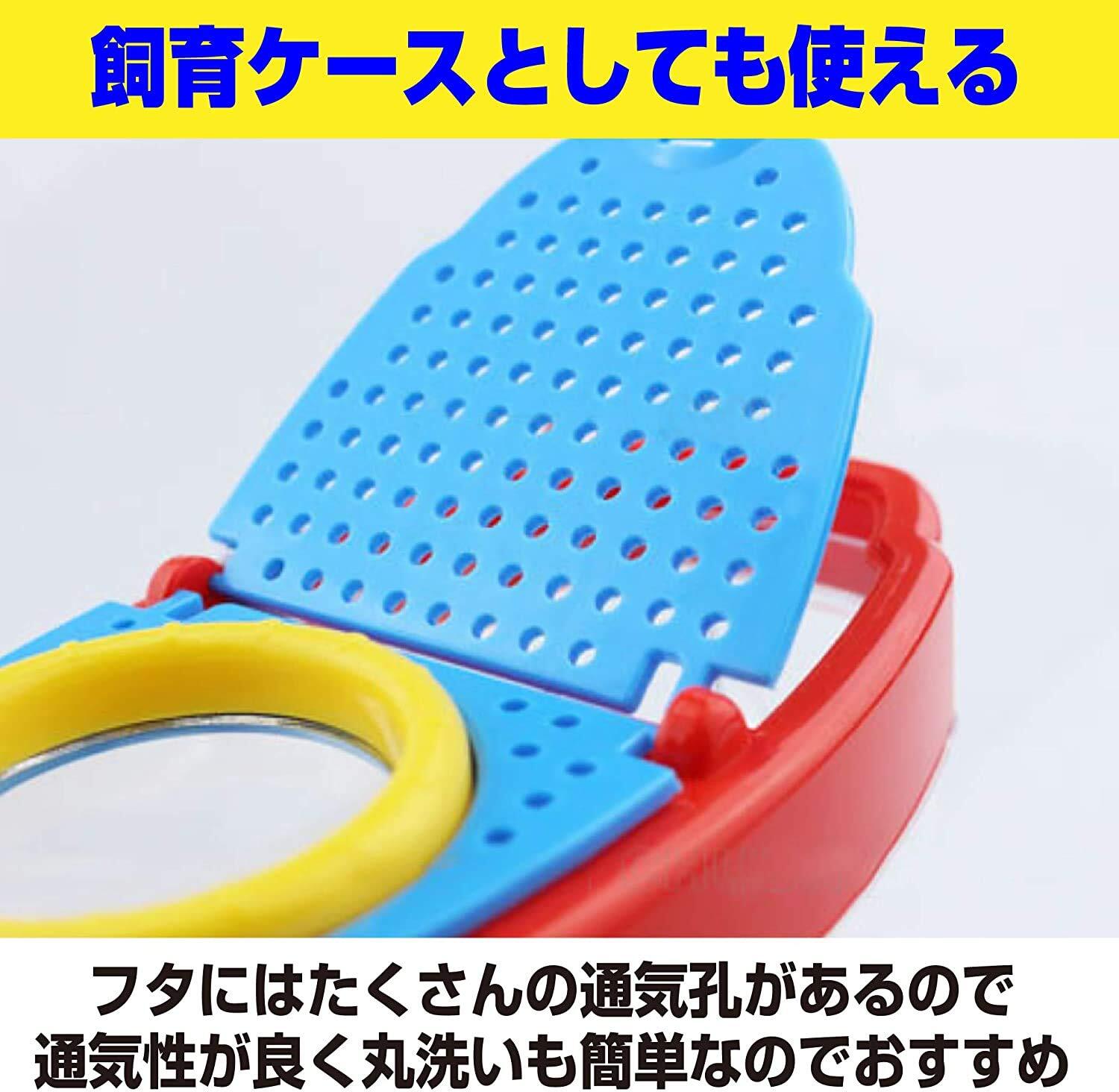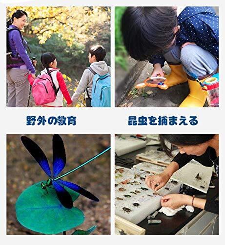 【適用性 特徴】 観察レンズがついている虫かごです!2.6倍の拡大鏡で、昆虫の細かいパーツまでよく見えます! 自然や昆虫に親しみ、昆虫を知るだけでなく、集中力や観察力を養う。 子供たちに、周りの世界の小さな生き物を捕まえ、研究し、解放することを奨励します。 子供たちが知識を広げ、探求と学習への子供たちの興味を刺激するのに最適です。