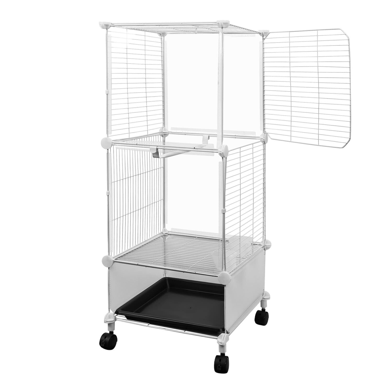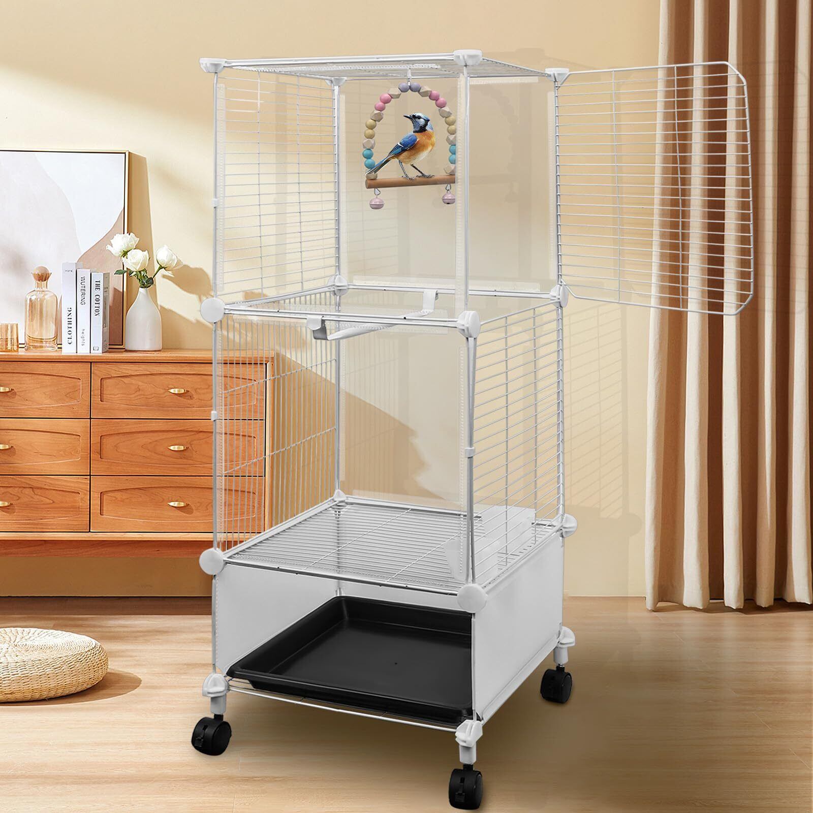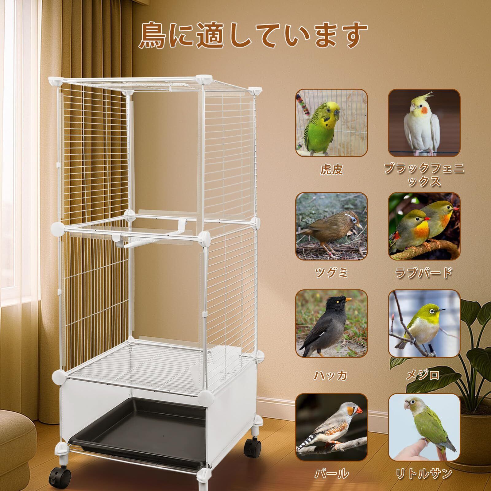 SYAYOUHIN バードケージ 鳥ケージ インコ 鳥かご 二層式 止め可能のホイール付き 移動便利 ヒメガビチョウ・九官鳥・ラブバード・ジャンボオカメインコ など向け 止まり木付き