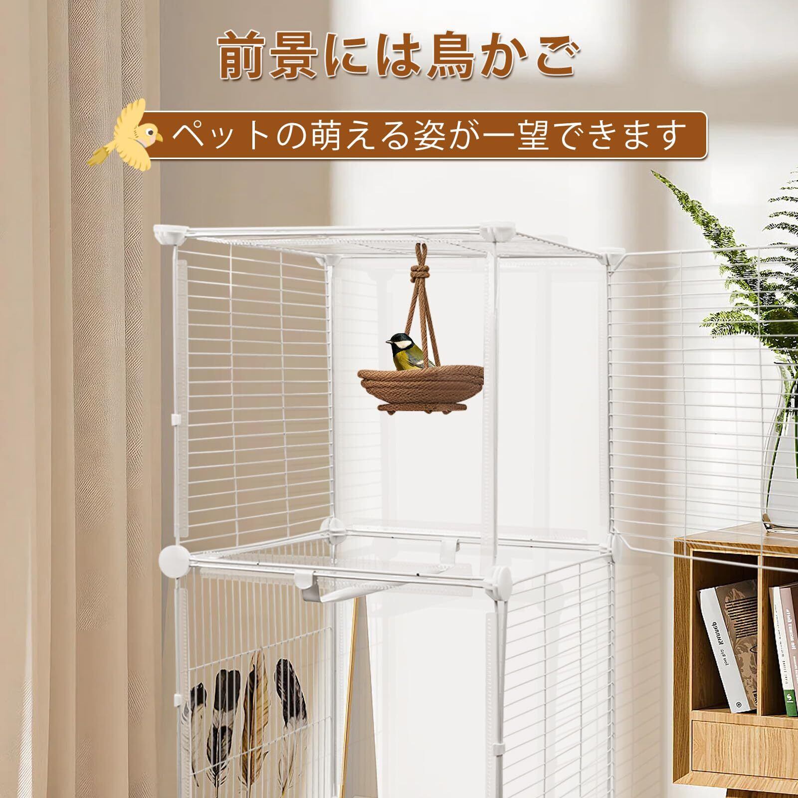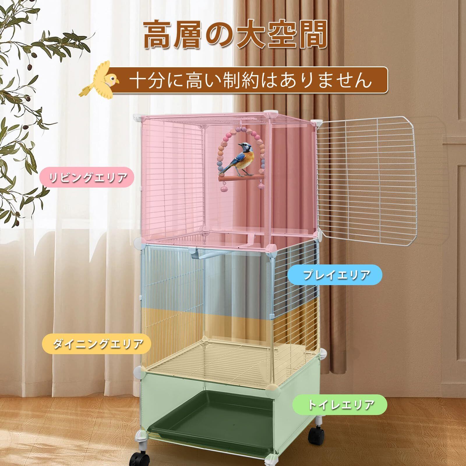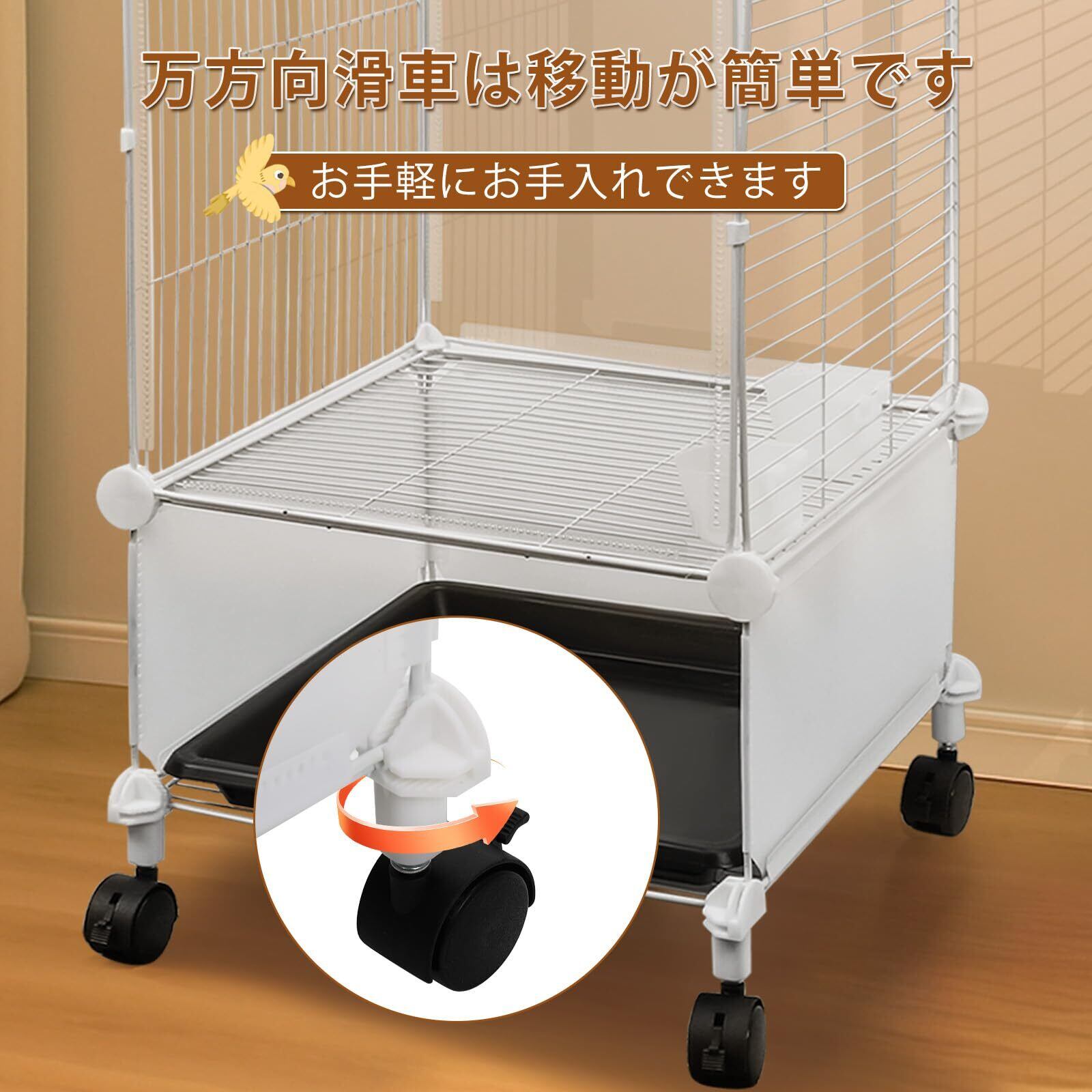 【清掃便利性】縦37cm×横37cm×高さ89cmの設計で、鳥がケージ内で十分に羽ばたけるスペースを確保。深さ約3cmの底面は引き出し式のトレイ構造を採用し、鳥の糞の清掃が簡単で、飼育環境の清潔さを保ちます。