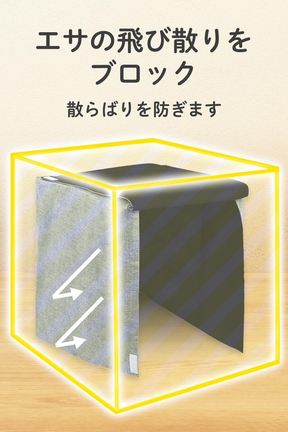 【お手入れしやすい】エサの飛び散りをブロック。 内側は防水生地で汚れも拭き取りやすく、洗濯もできますので衛生面でも安心です。 ※洗濯ネットを使用してください