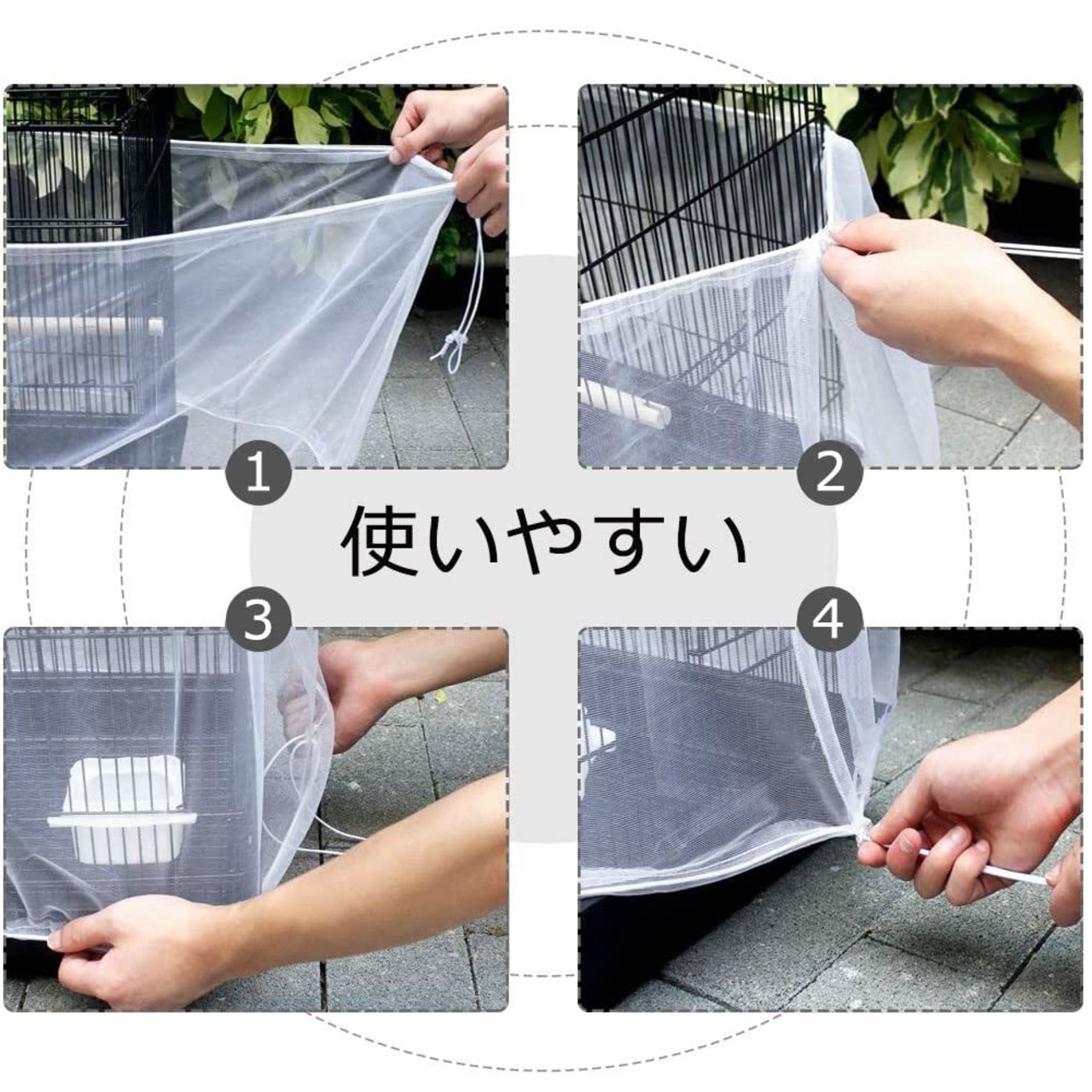 【新春セール】ZADAFINA 鳥かごカバー 2枚セット 防塵・通気性メッシュ 伸縮調整可能 オウム/小鳥用 餌の飛散防止 洗える ホワイト (サイズM) 39-78インチ対応 | wakuwakuland