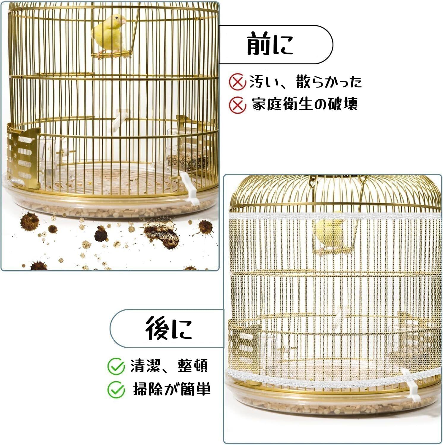 【清潔さをキープ】:バードケージ用ネットシードキャッチャーは、バードケージにしっかりとフィットし、種子や羽毛が床に散らばるのを効果的に防ぎます。バードケージとその周辺環境を清潔に保ち、ペットにとって清潔で整頓された生活環境を実現します。