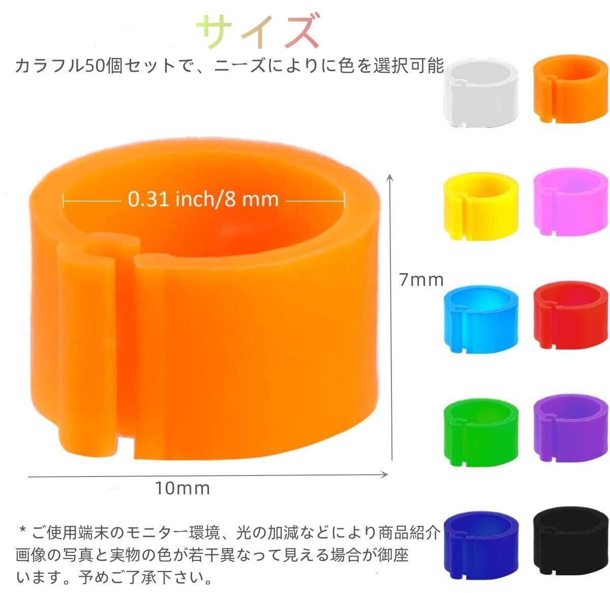 【在庫セール】YFFSFDC 足輪 鳥 家禽用足輪 家禽用個体識別リング 鳩 アヒル 鴨鶏足環 割輪 オウムの脚リング 家禽用足輪 着脱簡単 再利用可能 8mm カラフル50個セット | wakuwakuland