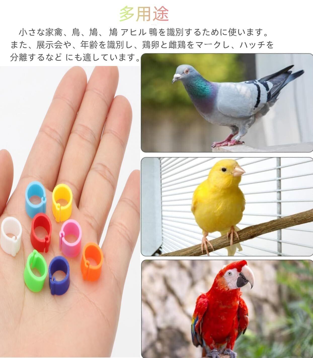 【多用途】小さな家禽、鳥、鳩、 鳩 アヒル 鴨を識別するために使います。また、展示会や、年齢を識別し、鶏卵と雌鶏をマークし、ハッチを分離するなど にも適しています。