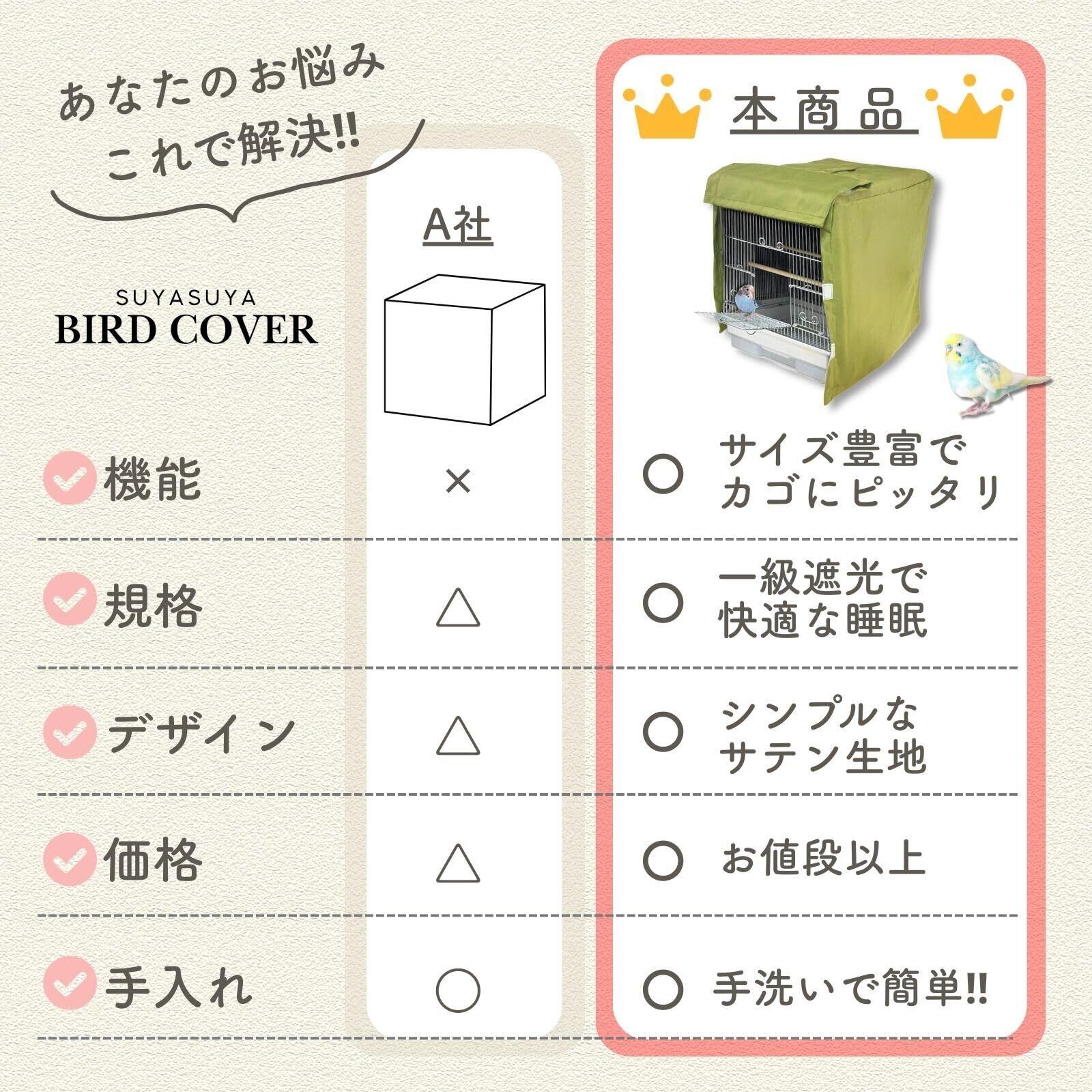 小鳥に快適な暮らしを。 遮光・保温・清潔を一枚で実現する、小鳥用ケージカバーが新登場! 小鳥たちが安心して休めるように、1級遮光生地を採用。外部の光をしっかり遮り、ぐっすりと眠れる静かな環境をつくります。 保温効果もあるため、冷え込みが気になる季節にもぴったり。 食事中のエサの飛び散り防止にも効果的。お部屋を清潔に保ちたい飼い主さんにも嬉しい仕様です。 前面の一口部分はマジックテープで簡単に開閉でき、状況に応じて空気の調整やコミュニケーションもスムーズに。