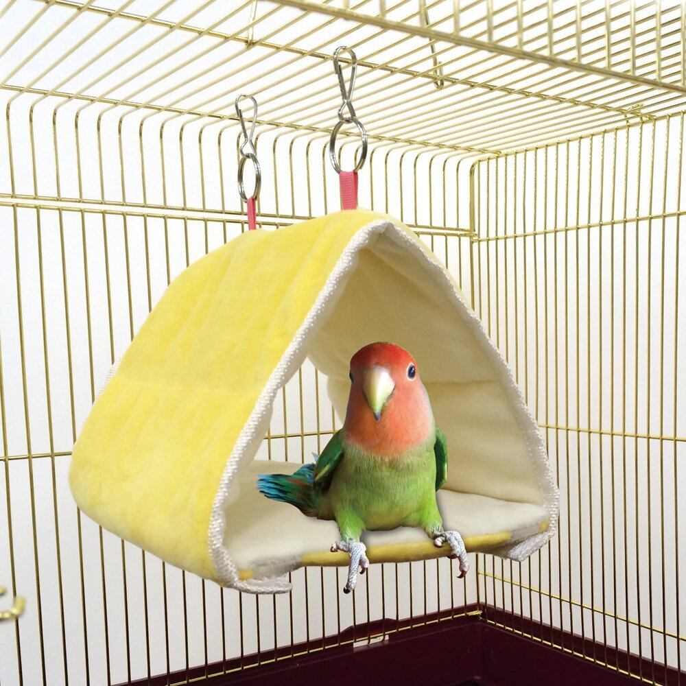 やわらかハウスの中でひとやすみ、小鳥用布製ハウス。汚れやすい底面の部分は、面ファスナーで取り外して洗えるので清潔に保てます。底面のポケット部分にヒーターを差し込んで使うことができます。(別売の「ほっととり暖寄りそいヒーター」のカバーとしてもお使いいただけます。)