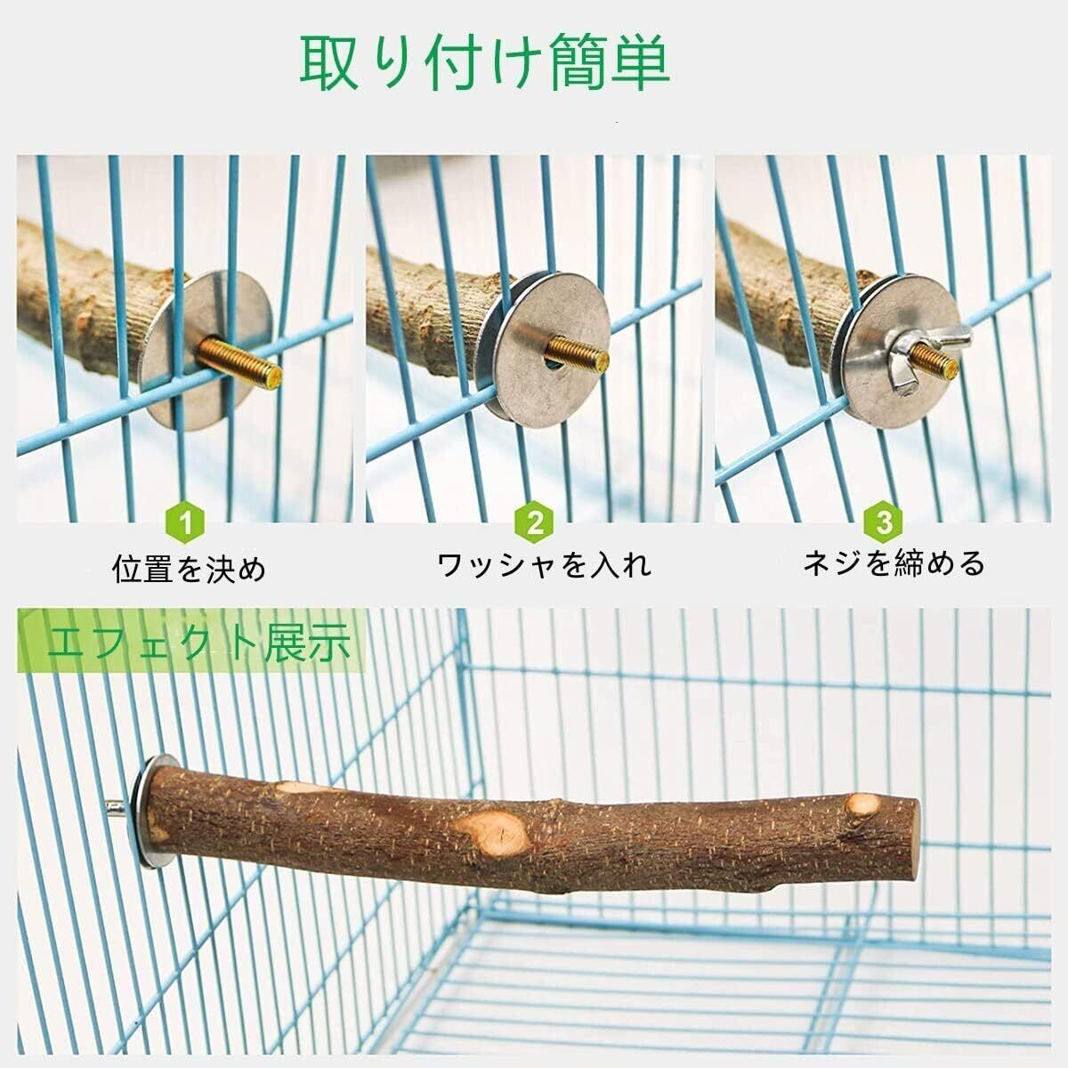 【商品仕様】インコなどの小型の鳥や中型の鳥用の止まり木 2本セット(ワッシャ×4個とネジ2本付き)。長さ:约25cm 枝の直径は1.5~2.5cm(太い部分)です。