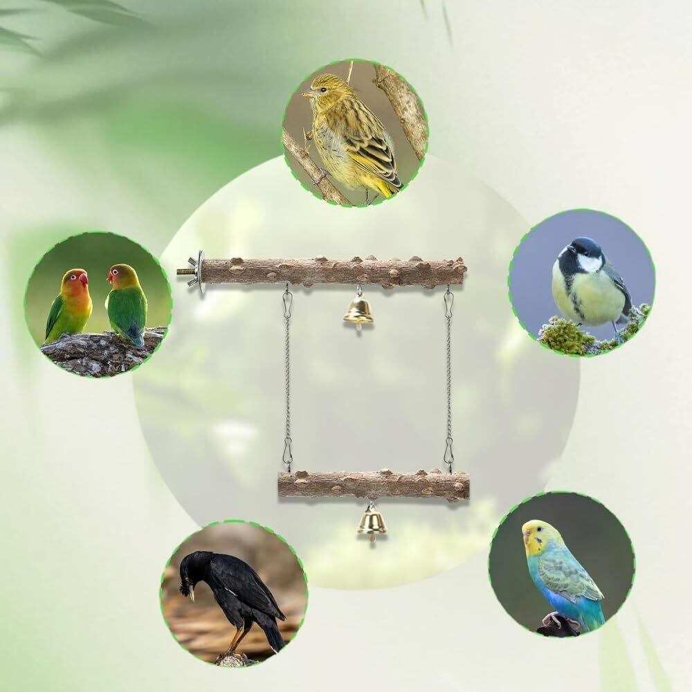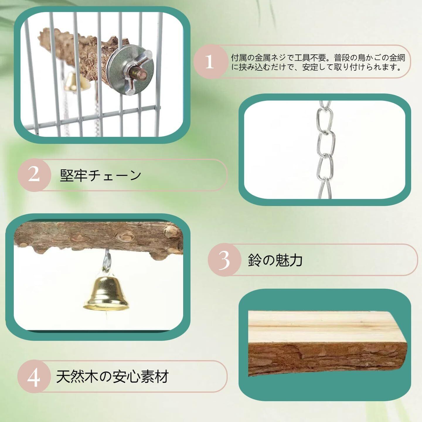 鳥 止まり木スタント インコ とまり木 爪研ぎ ブランコ木製 天然木 止まり木ステージ 鈴付き 遊び道具 取り付け簡単