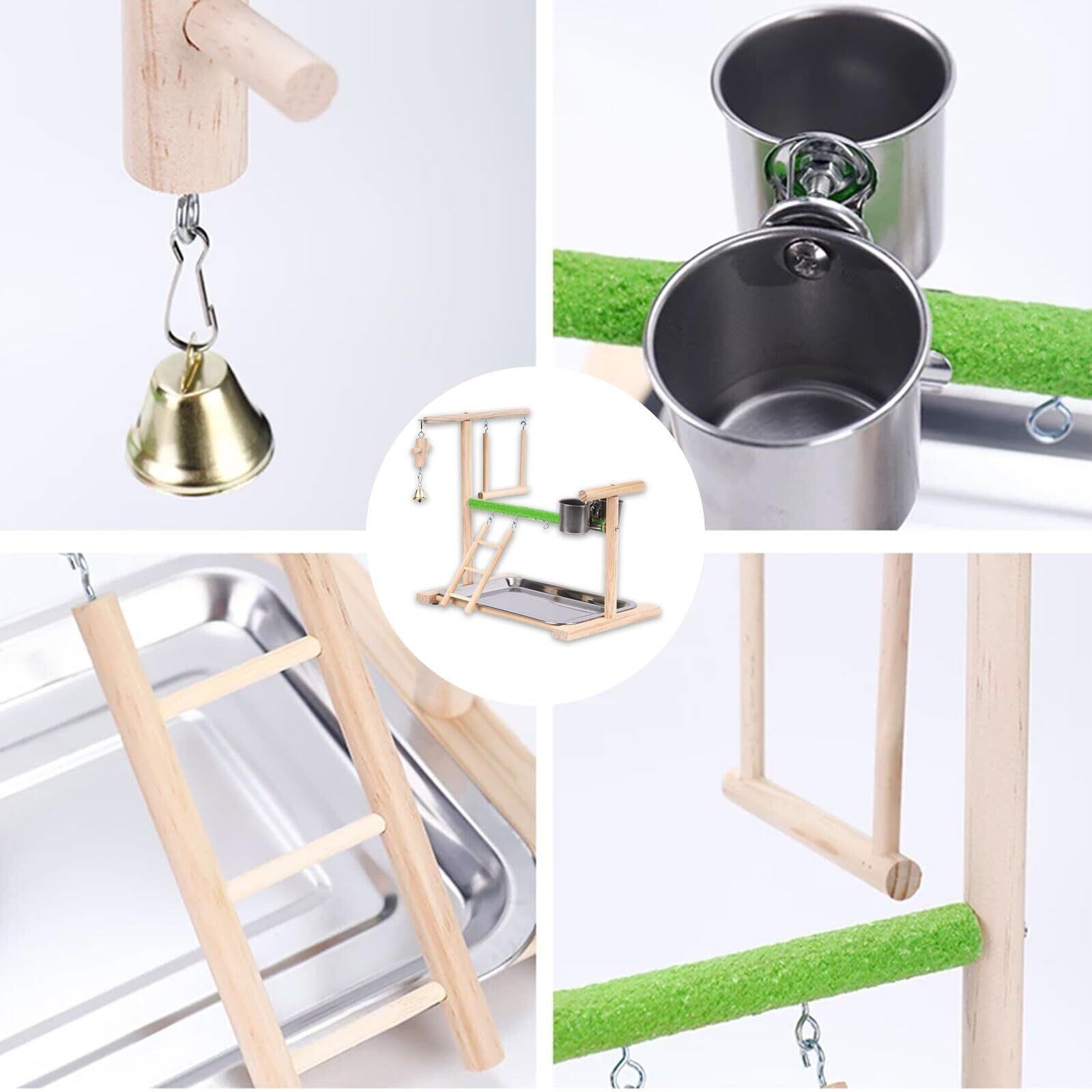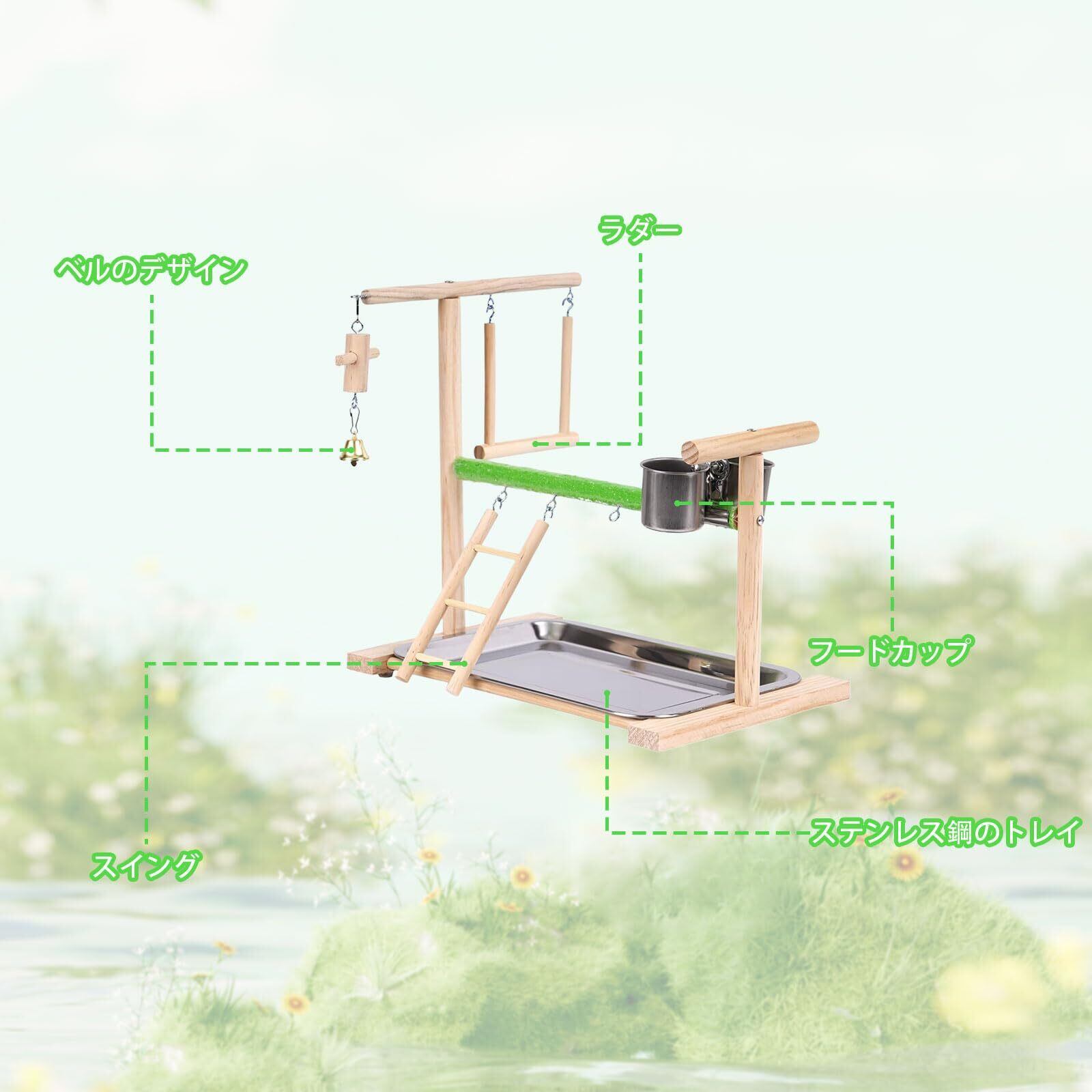 【多機能】この鳥の遊び場は多機能で、鳥はその上で立ったり、スイングしたり、階段を上ったり、食べたり、水を飲んだりすることができます。 ストレス解消、運動不足の改善、鳥の健康維持などにご使用いただけます。