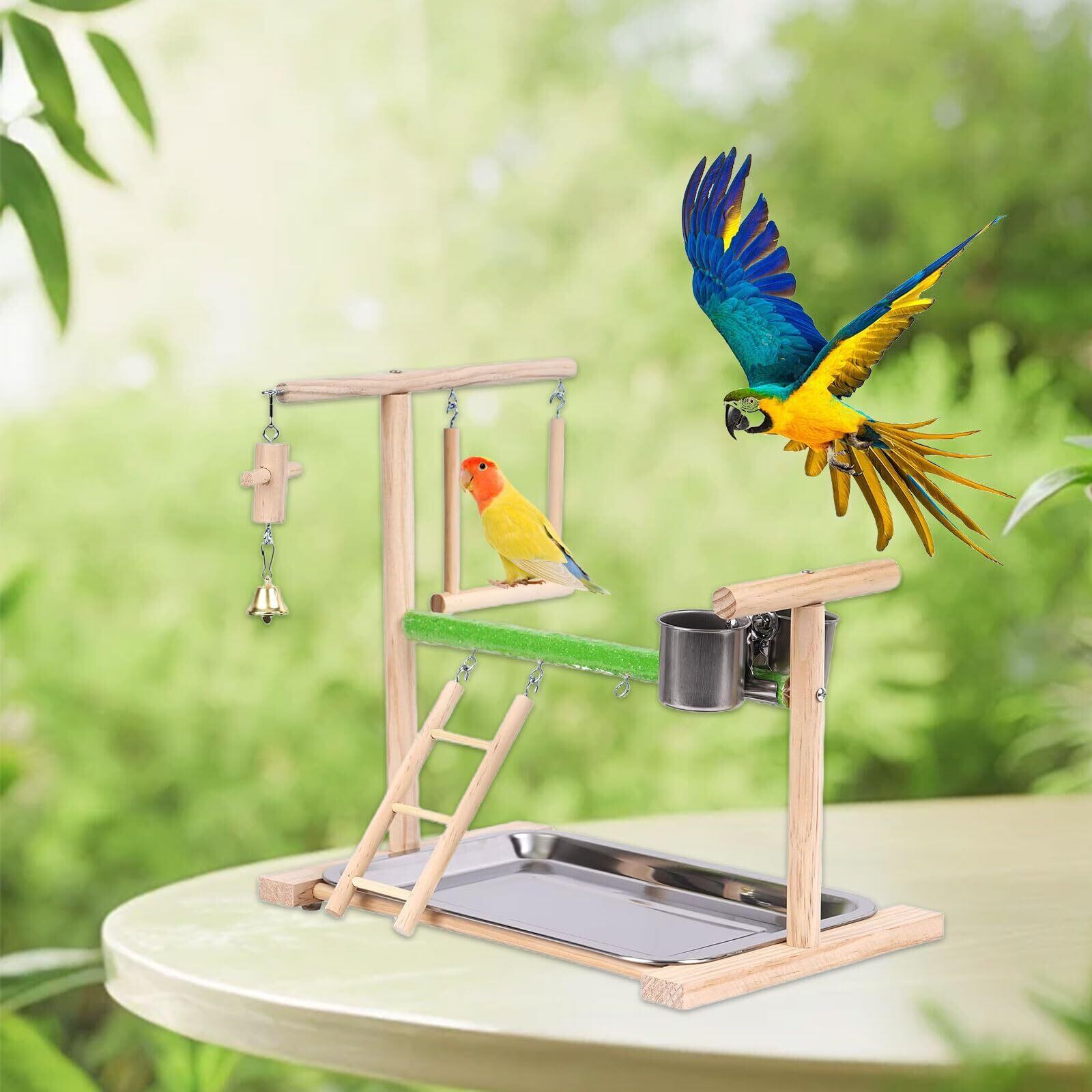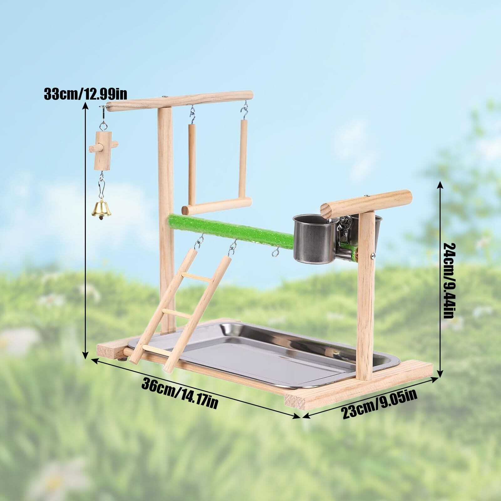 【特価商品】インコ 遊び場 鳥の遊び場 止まり木 鳥用 遊び場 おもちゃ バード 天然木 アスレチック 玩具 スタンド 止まり木 はしご ブランコ 食器 水器 トレイ付き バードトイ 鳥の巣 鳥栖 ラブバード セキセイインコ 小鳥 文鳥 オウム用 36*23*33cm (B) | wakuwakuland