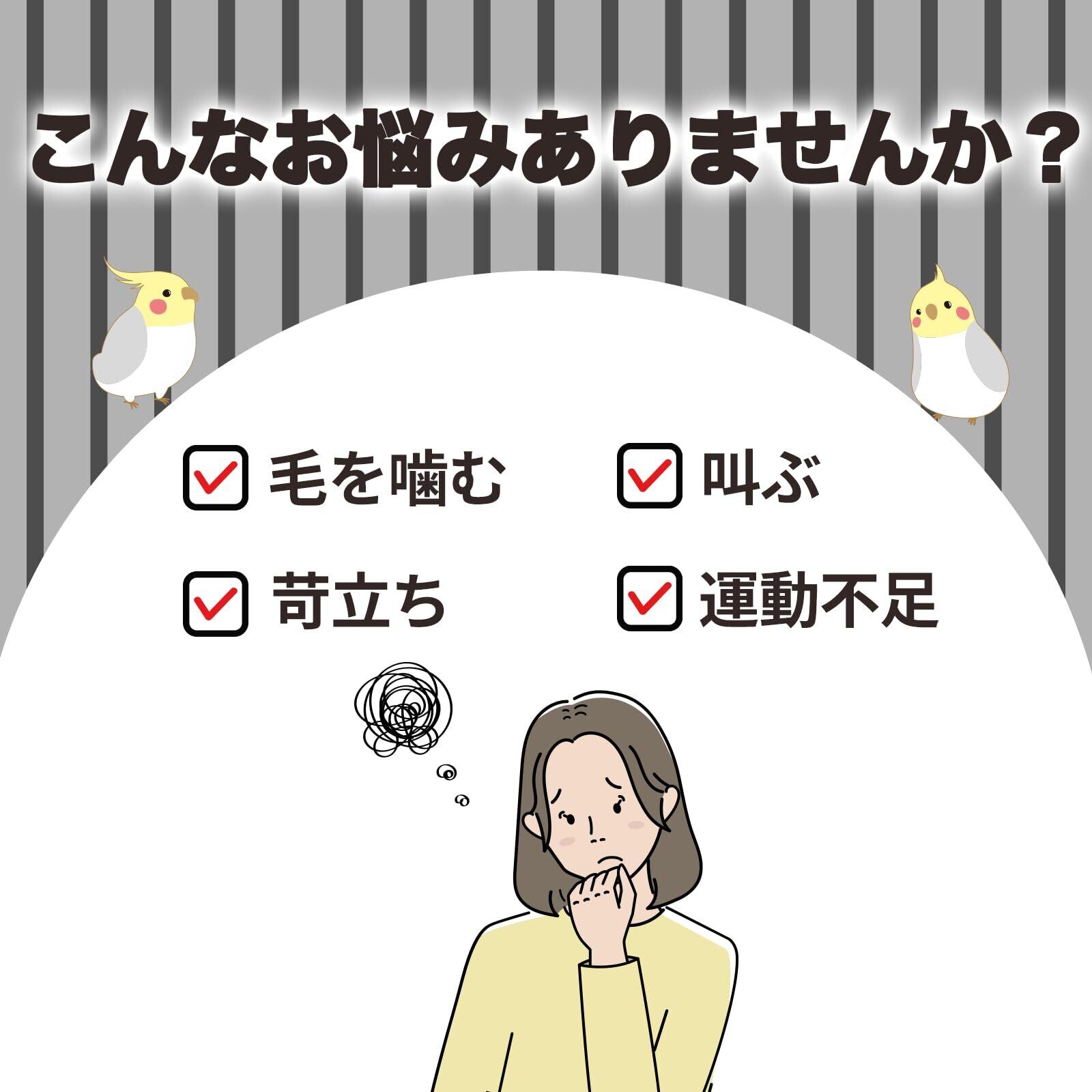ブランコやはしご、止まり木など鳥が快適に過ごせるおもちゃがたっぷり。