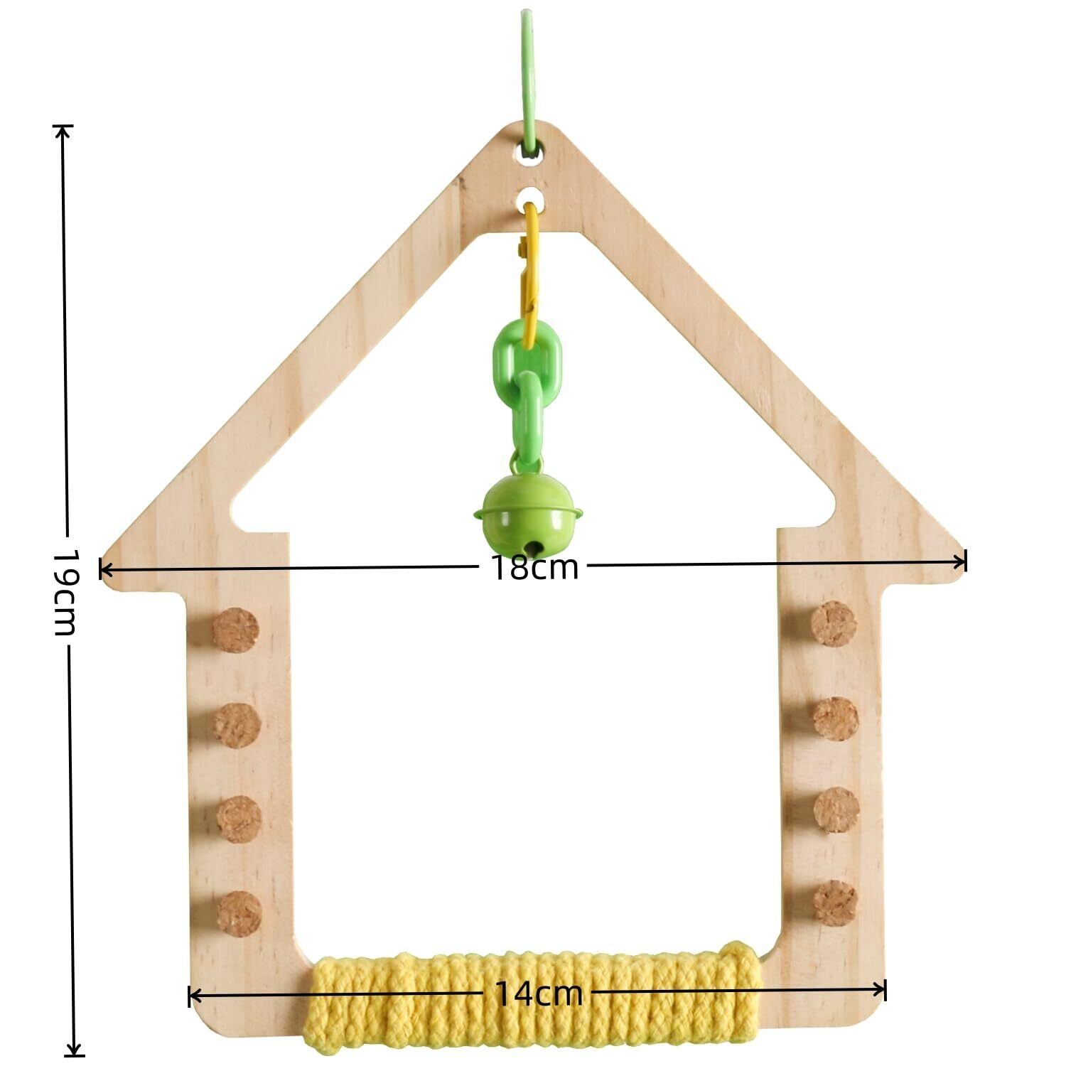 Moruna インコ おもちゃ 鈴 文鳥 グッズ オカメインコ セキセイインコ ブランコ 屋外 インコ とまり木 鳥 おもちゃ 木制 (ハウス)
