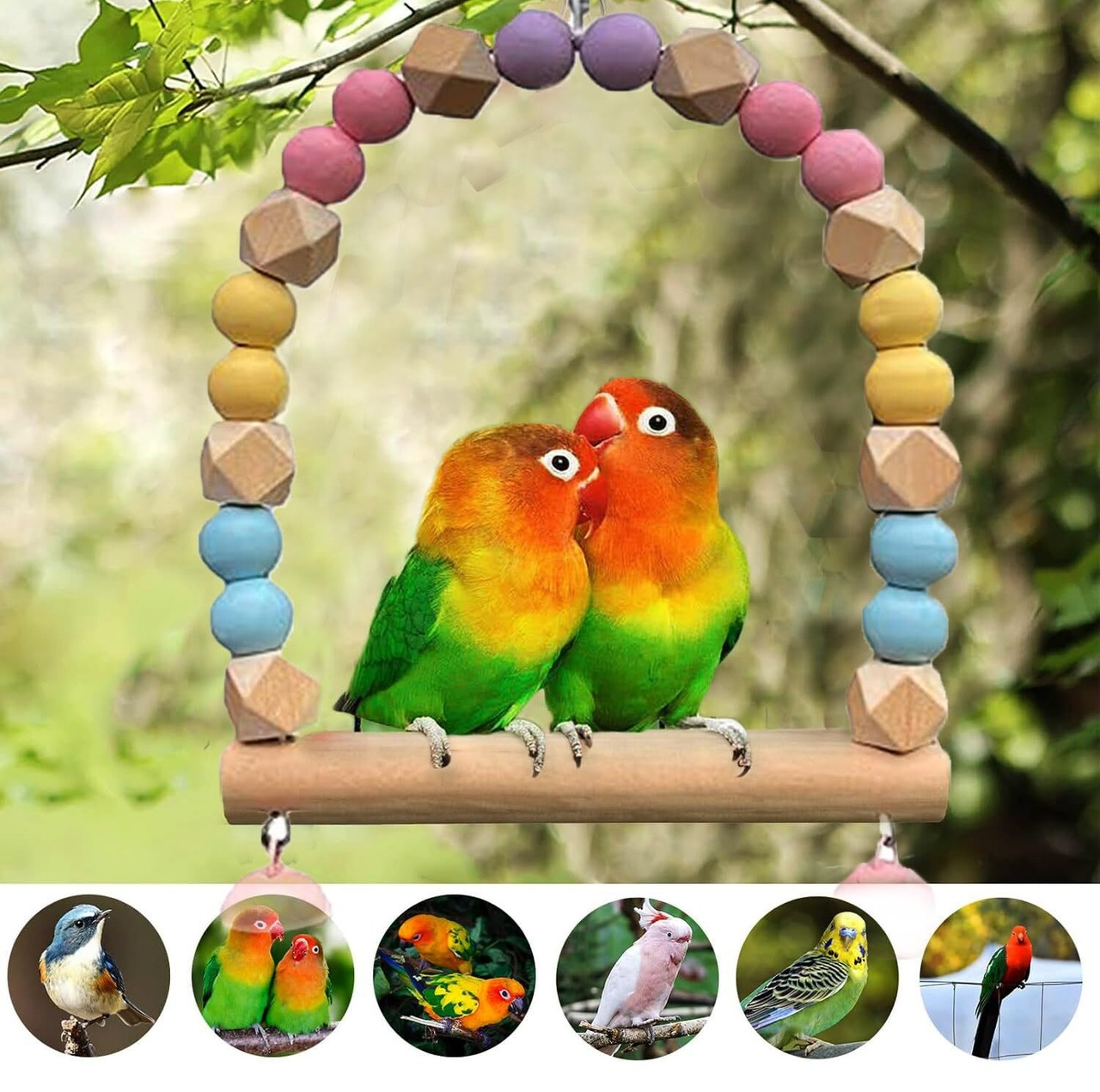 Roczential ペットの鳥のブランコ、オウム用の鳥のブランコ | おもちゃベル付き天然木製ブランコおもちゃ | 鳥とまり木ケージおもちゃとまり木クライミングおもちゃ、インコセキセイインコのための耐久性のある木製の天然鳥のおもちゃ