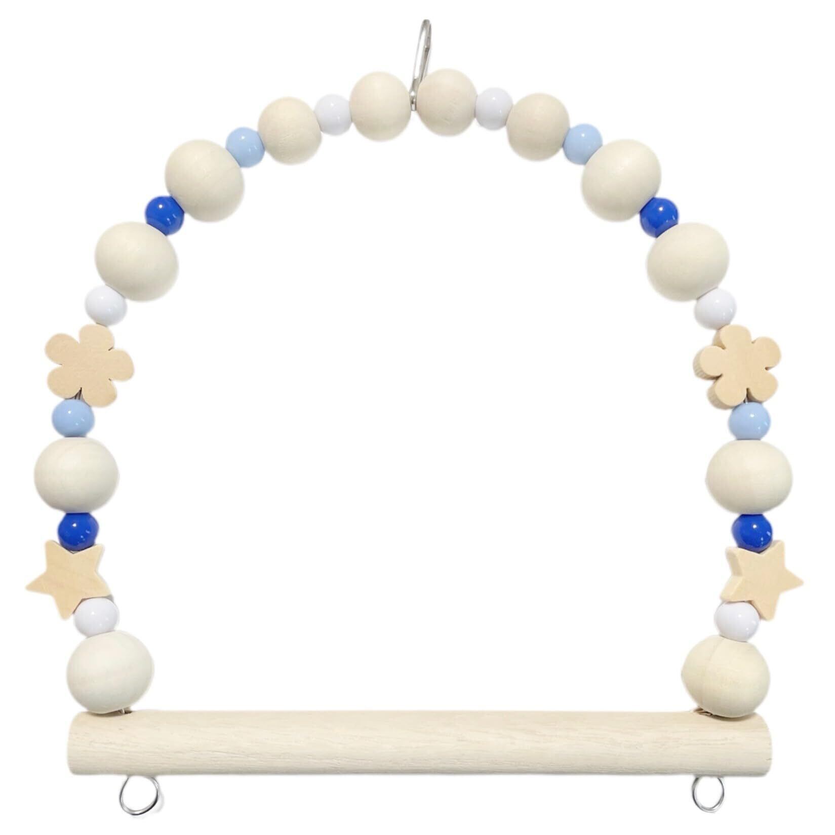 日本製 安心安全素材 天然木 セキセイインコ 文鳥 小鳥 ブランコ スイング 小動物にも タイプNA (NA11:ブルー, Mサイズ)