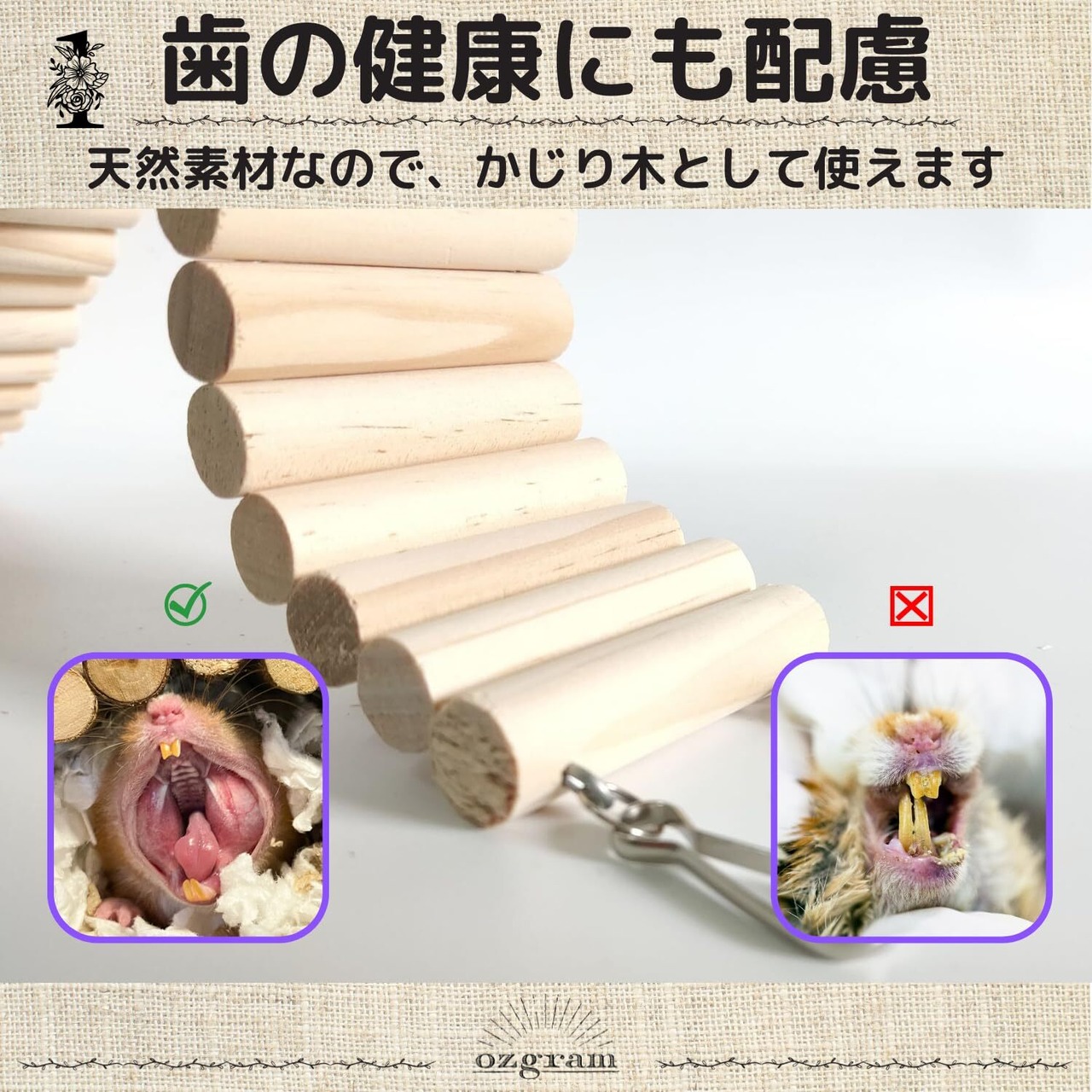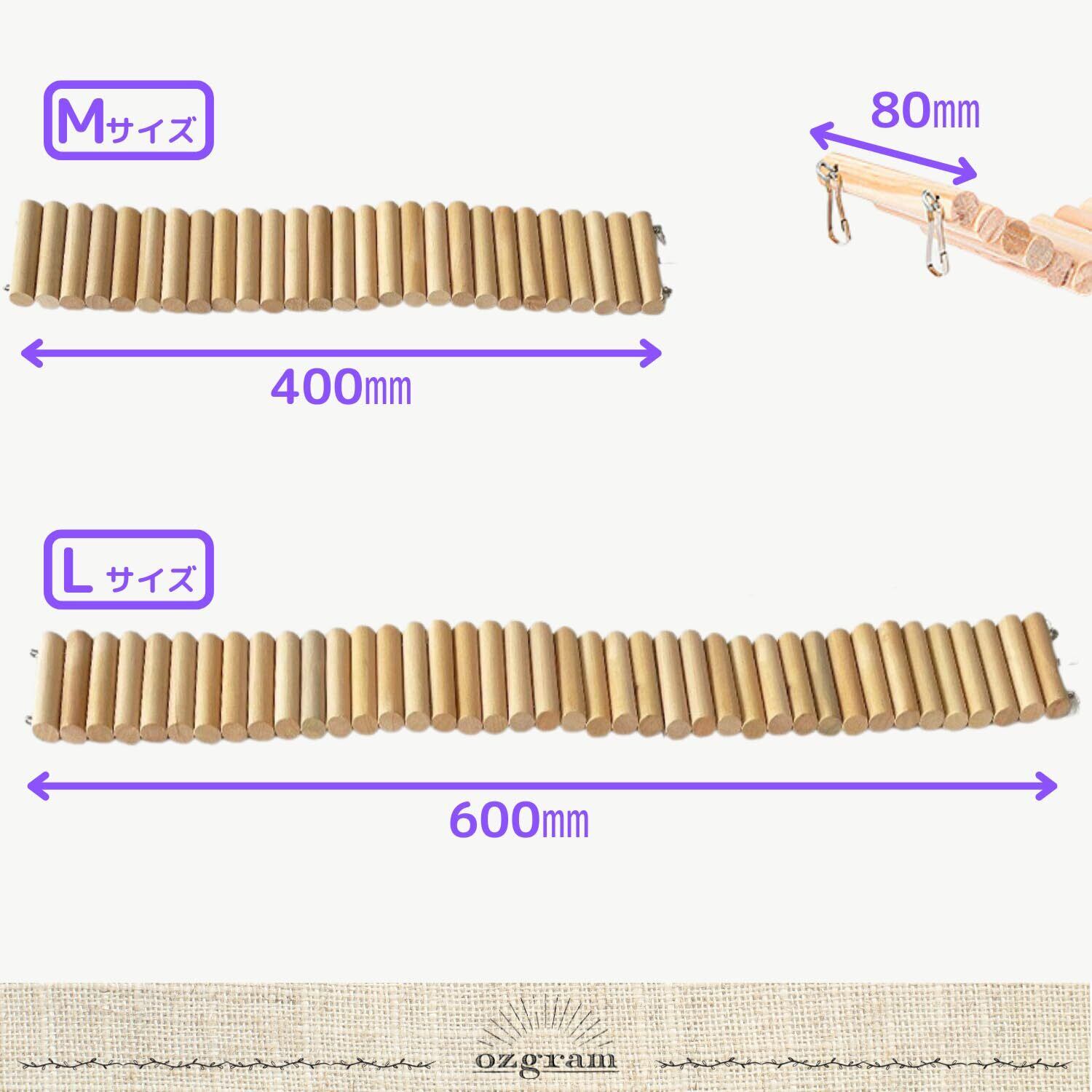 ozgram ウッドブリッジ 【60㎝ Lサイズ】 アーチ はしご 階段 吊り橋 吊り下げ フェンス パーテーション ゲージ アクセサリー おもちゃ 小動物 ハムスター インコ 鳥 止まり木 運動不足解消 天然木製